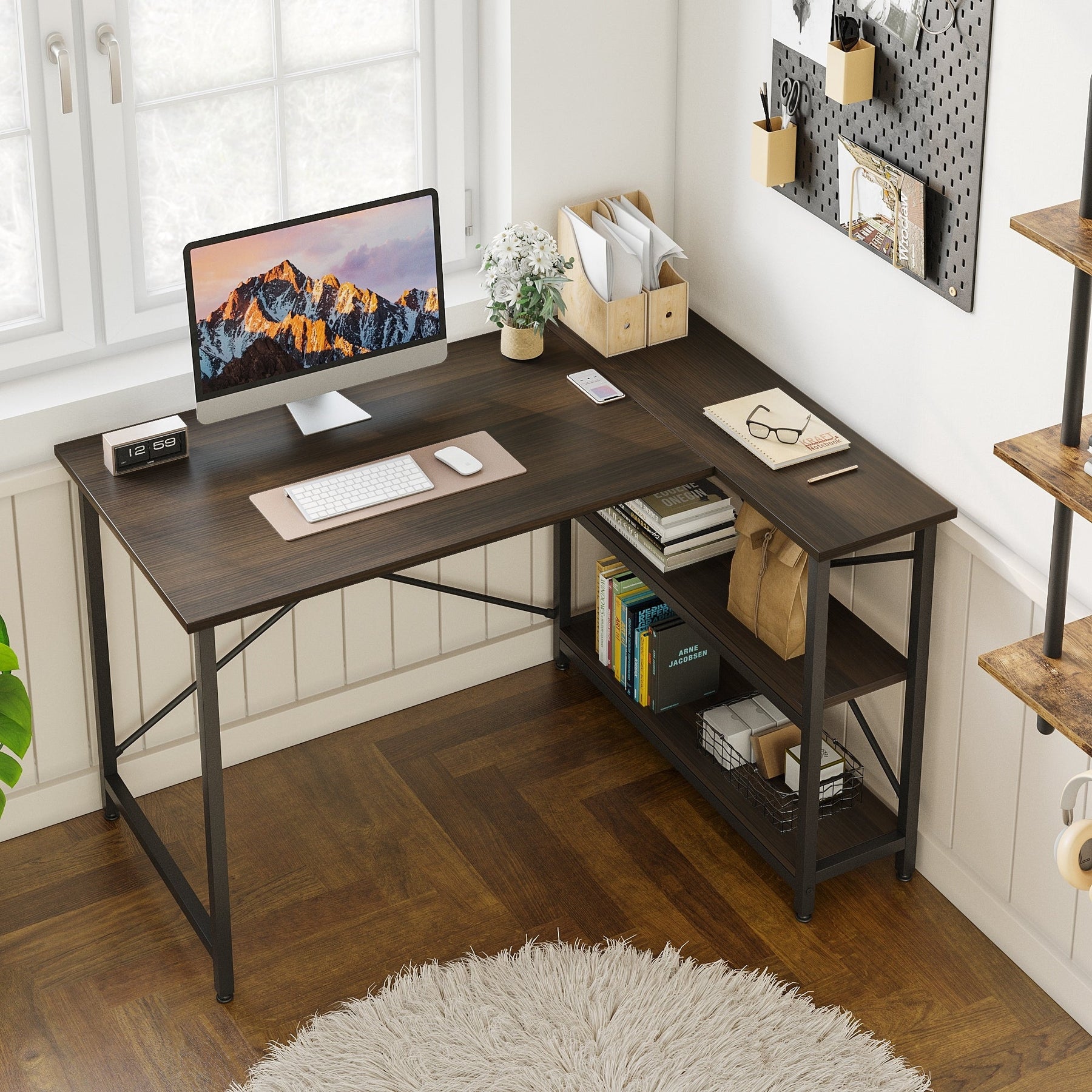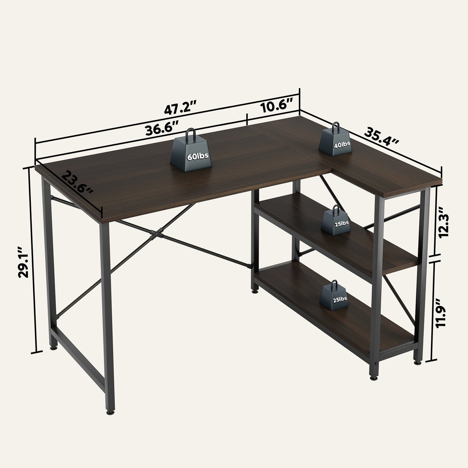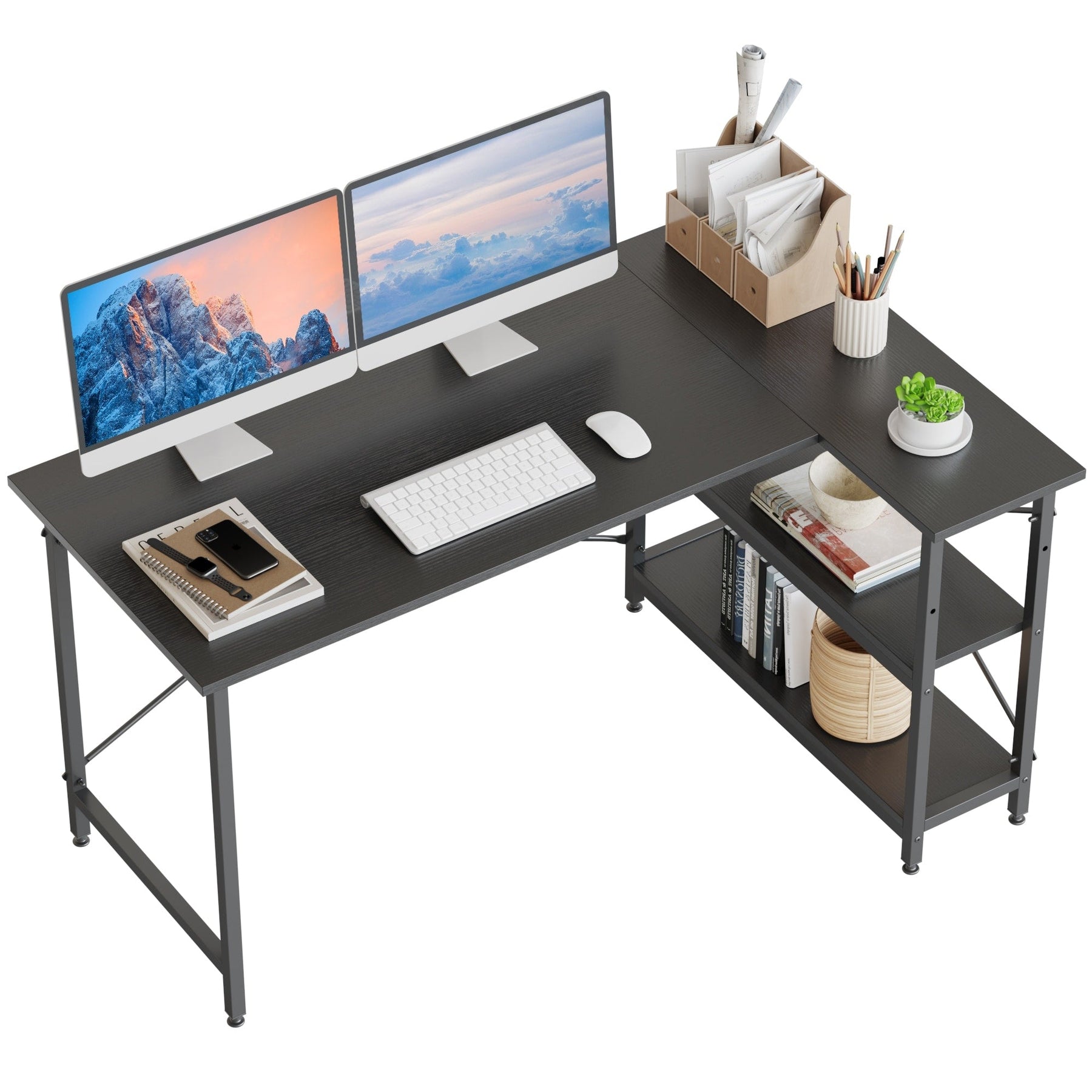 Modernisez votre bureau à domicile avec notre petit bureau d'angle en L avec étagères de rangement. Doté d'un design unique en L et d'un plateau de 140 cm, ce bureau offre plus d'espace pour vos dossiers et livres, tout en apportant une touche de dynamisme à votre espace de travail. Ses étagères de rangement réversibles s'installent à gauche comme à droite selon vos préférences, et leur hauteur est réglable. Le montage est un jeu d'enfant grâce à des instructions claires et des accessoires bien organisés. Vous bénéficierez d'une tranquillité d'esprit grâce à notre politique de retour de 30 jours et à notre service client à vie. Nous disposons d'une plaque d'immatriculation certifiée et d'un test de charge professionnel. La photo est une photo réelle de l'acheteur, autorisé à l'afficher (la photo réelle du client mesure 119 cm).
