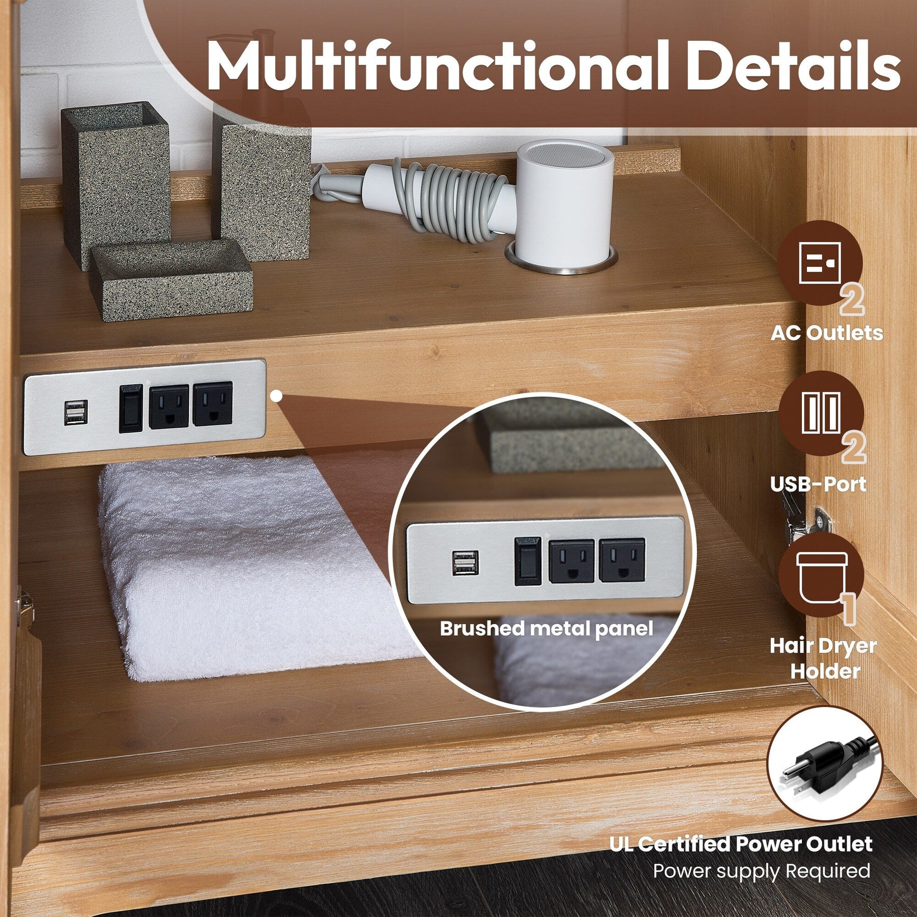Fonctionnalité pratique : Les prises d'alimentation et USB homologuées UL intégrées permettent d'alimenter facilement vos appareils de beauté et de soins. Un organiseur pratique pour sèche-cheveux est inclus pour garder votre outil préféré à portée de main.