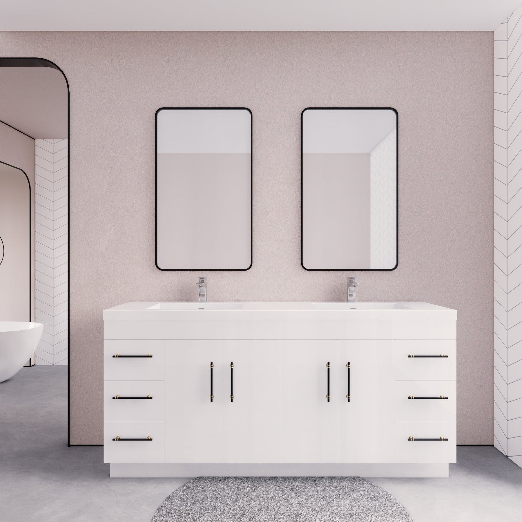 Découvrez le meuble-lavabo îlot Eliza 72'' avec double vasque, une alliance saisissante de design moderne et de matériaux haut de gamme. La poignée élégante et le placage brillant confèrent une touche de sophistication à toute salle de bains, tandis que le plan de travail en acrylique robuste garantit un entretien facile et une longue durée de vie. Eliza est équipé d'une quincaillerie européenne haut de gamme à fermeture amortie pour une expérience luxueuse à chaque fois.