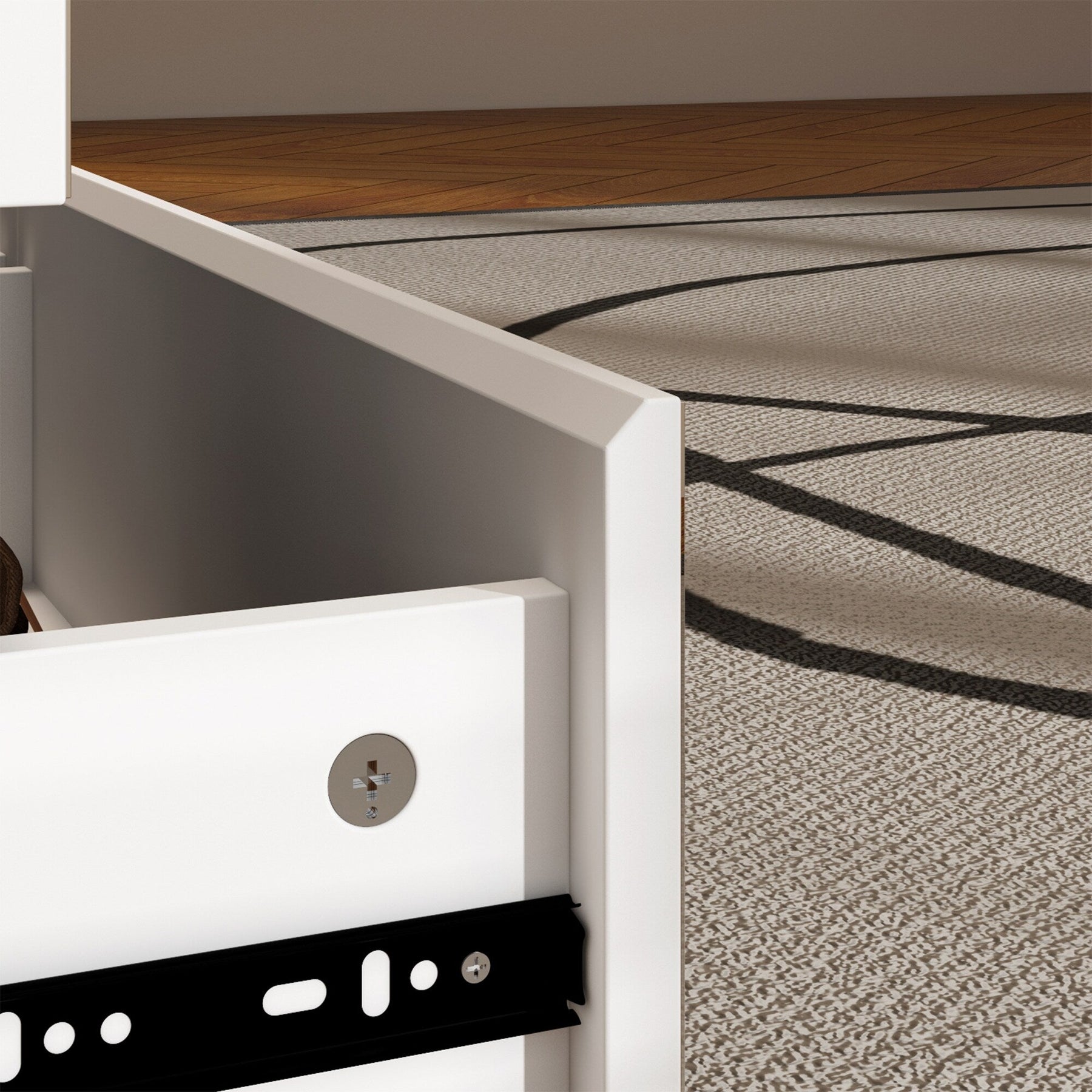 Les tiroirs se rétractent en douceur sur des glissières métalliques avec butées de sécurité intégrées