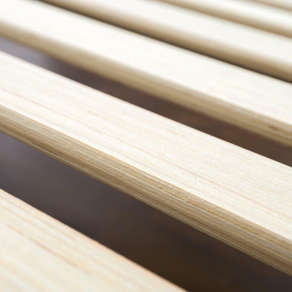 La tête de lit rectangulaire à lattes ajoute une touche d'élégance