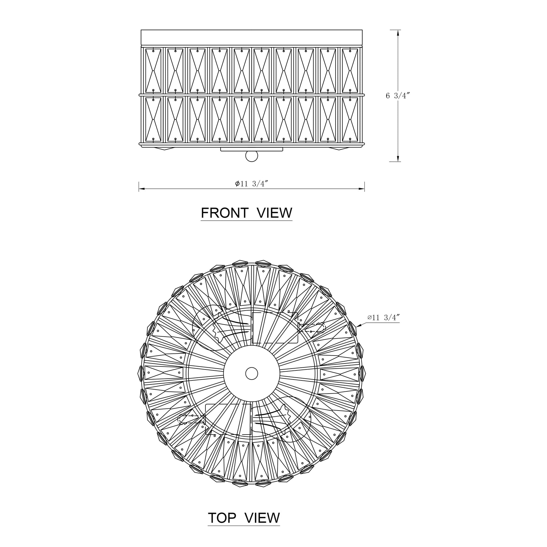 Dimensions du produit : Le plafonnier encastré en cristal mesure D 11,75 pouces x H 6,75 pouces, sa plaque arrière mesure D 11,75 pouces.