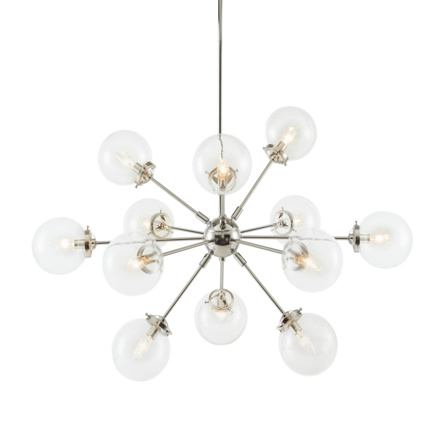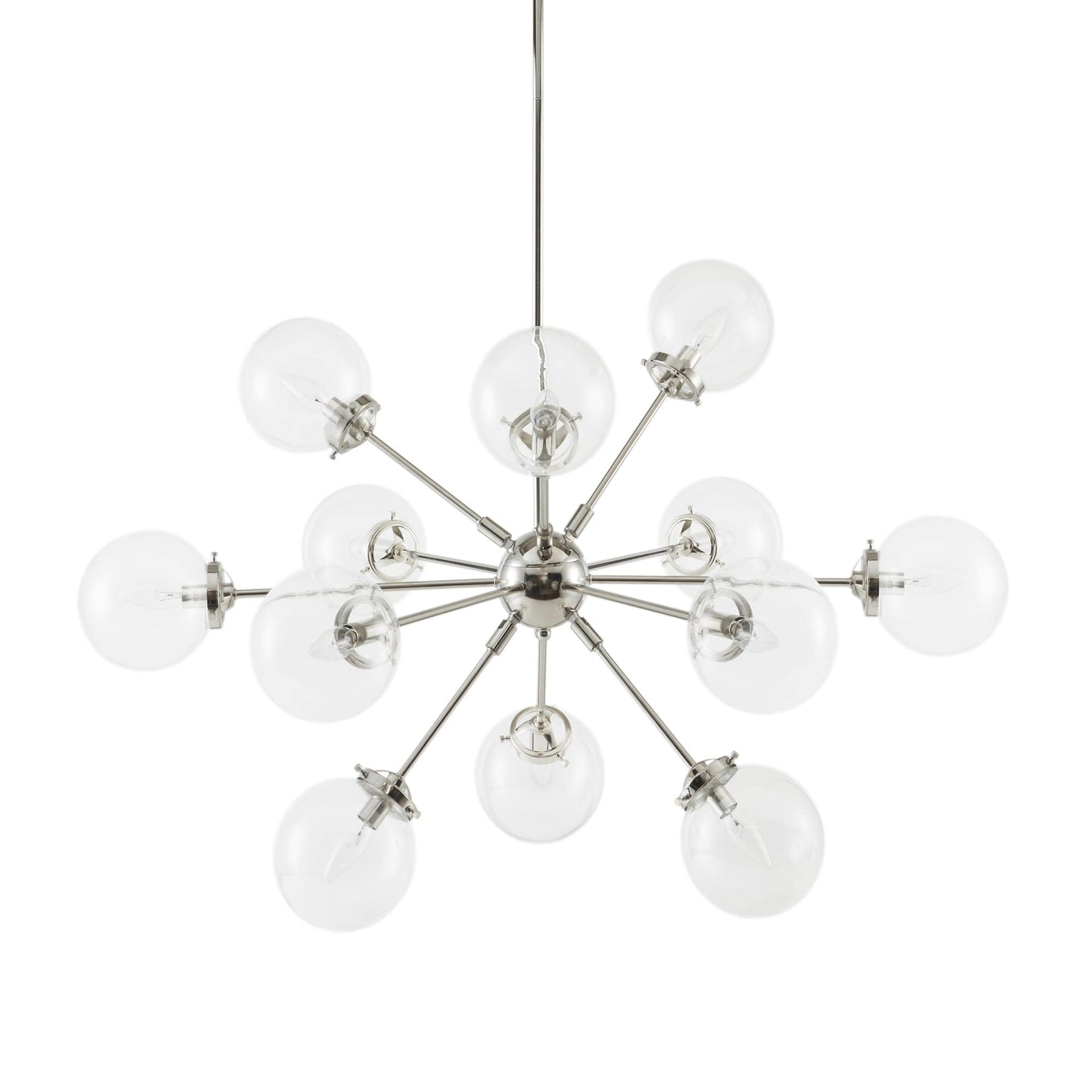 Lustre moderne du milieu du siècle avec 12 ampoules rondes transparentes surdimensionnées