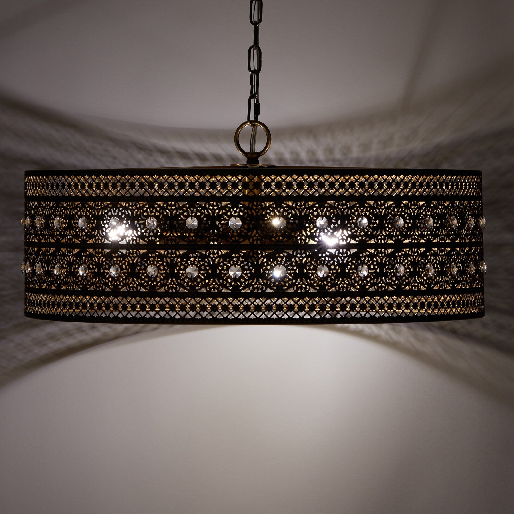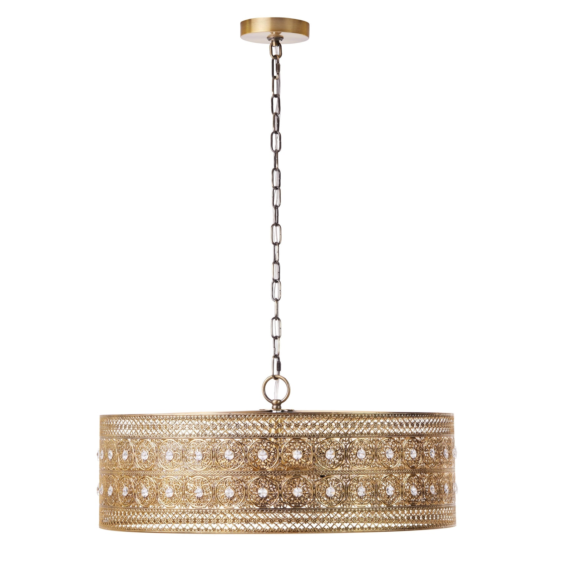 Offrez à votre espace un équilibre parfait entre glamour et tradition grâce au lustre River of Goods Bryar en laiton et cristal (71 cm de large) à 3 lumières. Avec sa finition laiton brossé surdimensionnée, ce lustre est doté d'un abat-jour à double médaillon et de 70 cristaux K-9 transparents à facettes. Idéal pour votre salle à manger, votre salon ou votre entrée, ce lustre luxueux saura s'imposer dans n'importe quelle pièce.