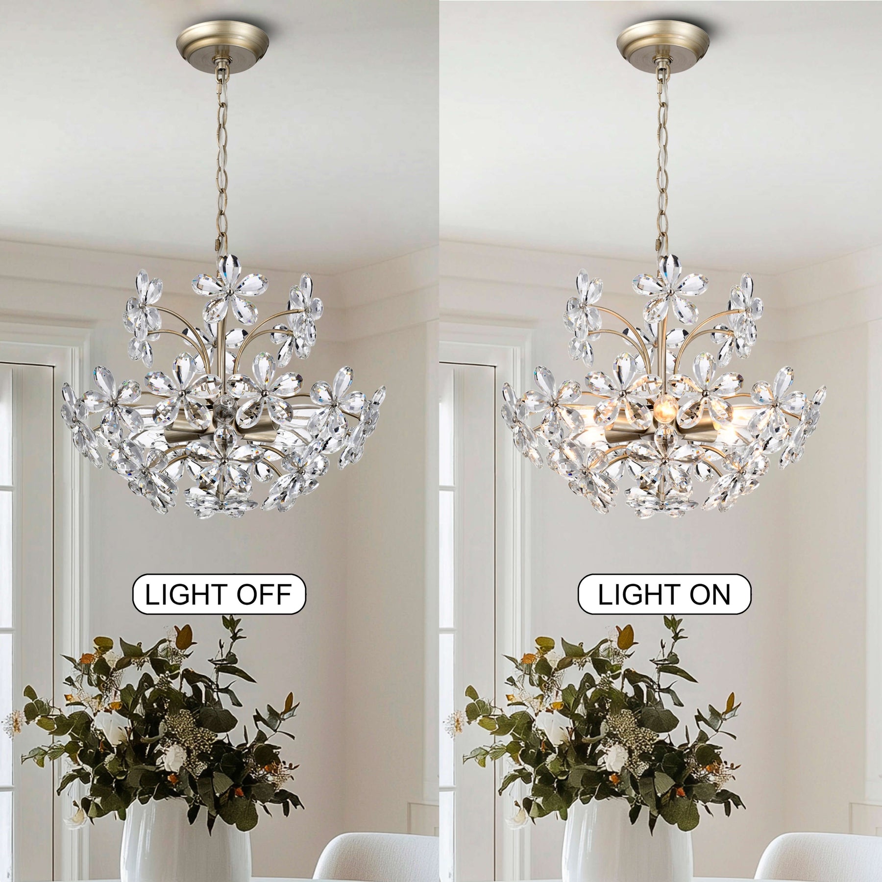 Transformez votre espace avec le lustre Rosa à 6 lumières en cristal champagne argenté brossé. Ce luminaire élégant, orné de fleurs en cristal, apporte une touche de sophistication à n'importe quelle pièce. Grâce à sa chaîne réglable de 100 cm, vous pouvez ajuster sa hauteur pour un placement parfait dans la salle à manger, le salon ou l'entrée. Ses six douilles assurent un éclairage généreux, tandis que sa finition champagne argenté brossé rehausse son allure moderne et met en valeur les cristaux scintillants. Couleur dominante champagne, couleur secondaire argent, finition brossée marron. La plaque de plafond est en fer ; abat-jour : non disponible.