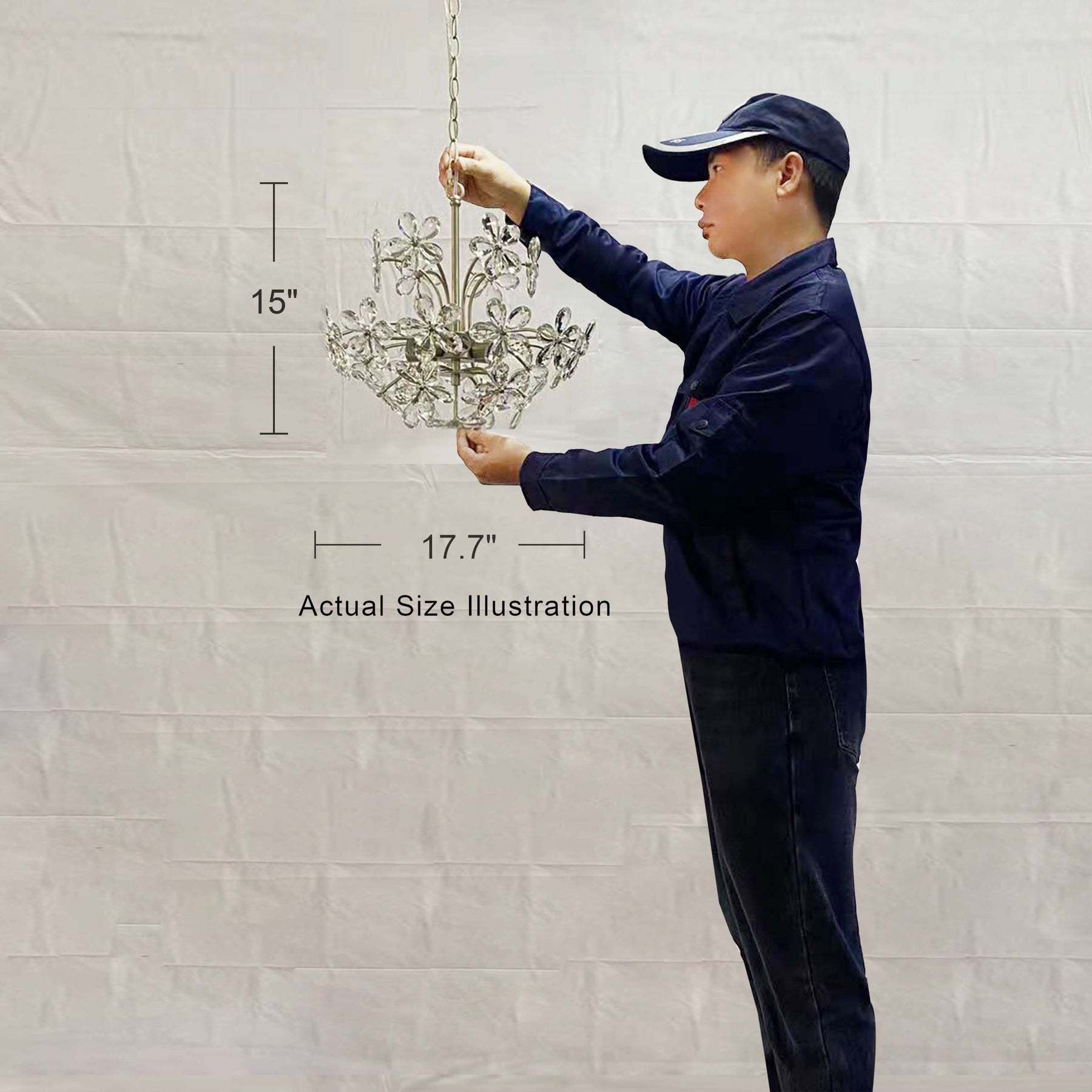 - Luminaire : 17,7 pouces de diamètre x 15 pouces de hauteur ; Plaque de plafond : 5,1 pouces de diamètre x 1 pouce de hauteur.