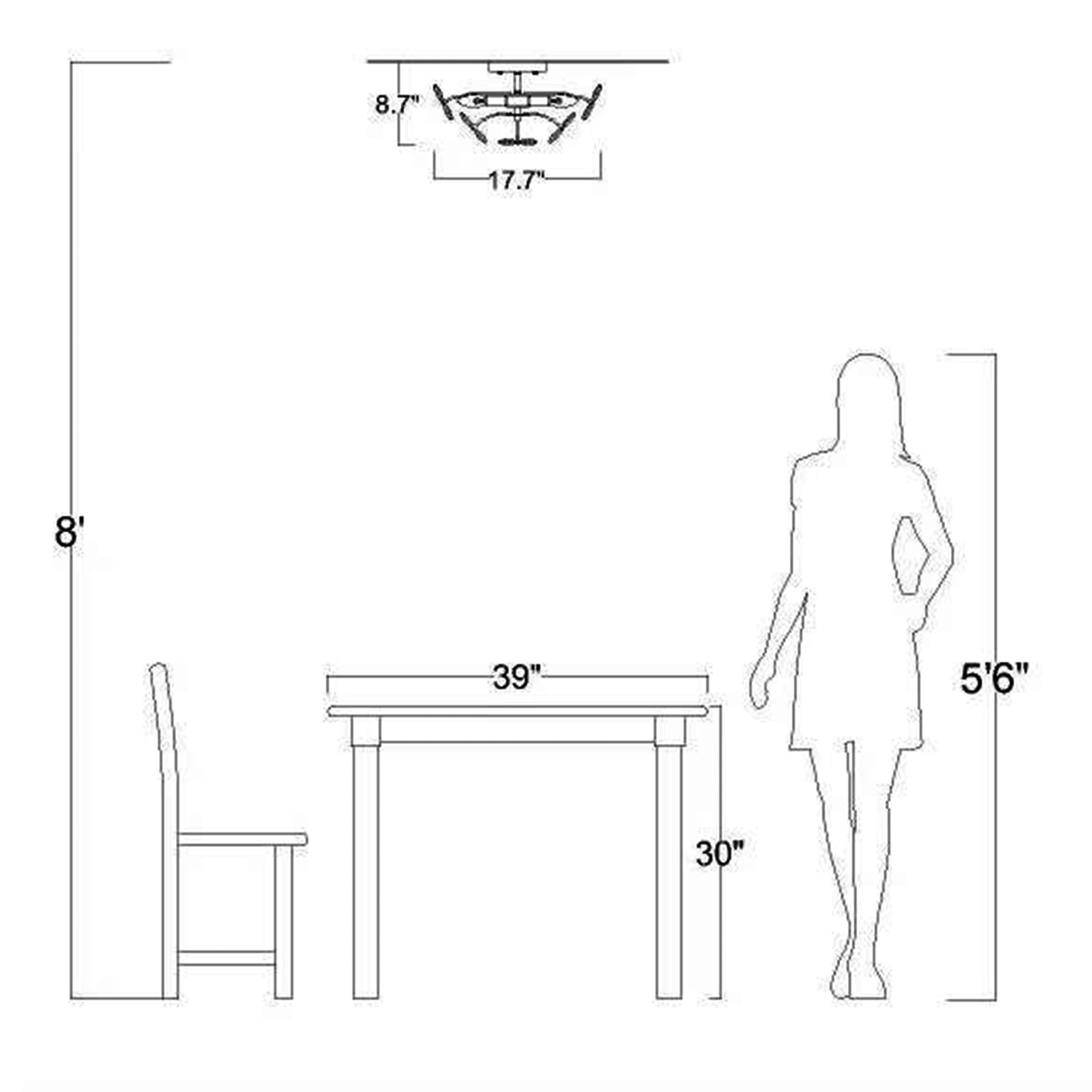 Luminaire : 17,7 pouces de diamètre x 8,7 pouces de hauteur ; Plaque de plafond : 5,9 pouces de diamètre x 1 pouce de hauteur.