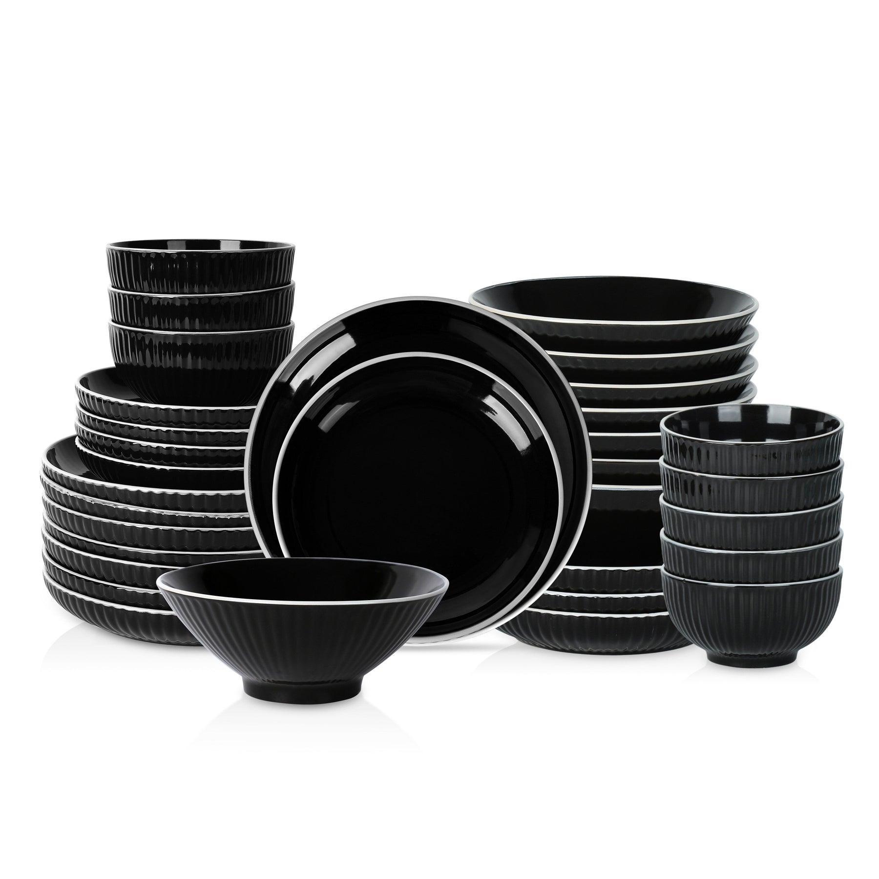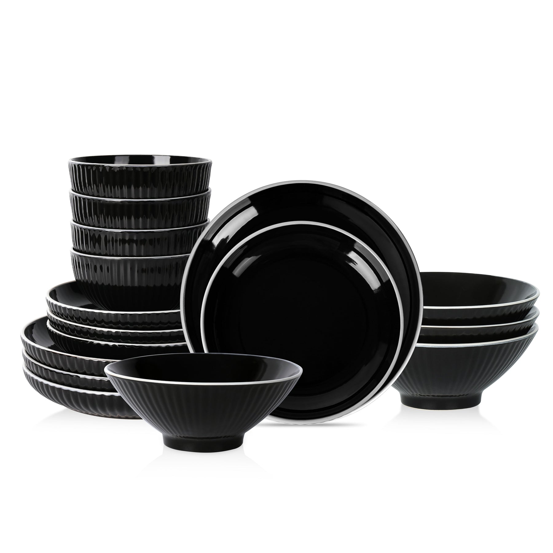Service pour 4 ou 8 personnes : L'ensemble comprend 16/32 pièces complètes avec des assiettes plates de 10,5 pouces, des assiettes à salade de 8 pouces, des bols à soupe/céréales de 25,7 fl.oz. de diamètre de 6,02 pouces et des bols à ramen de 40,4 fl.oz. de diamètre de 8,11 pouces.