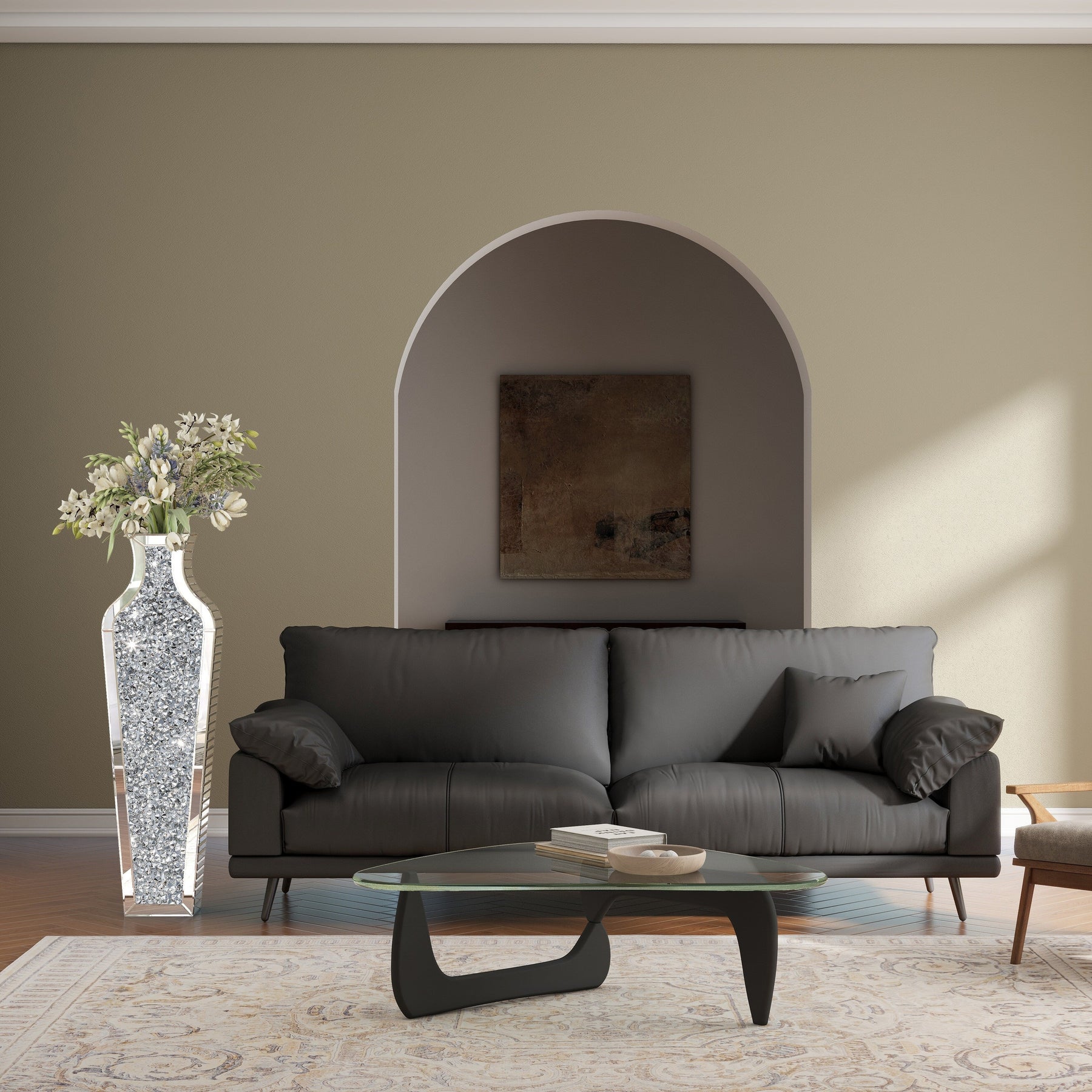 Si vous aimez décorer votre intérieur, ce vase de sol sera le choix idéal. Il trouvera sa place dans n'importe quel coin, notamment à l'entrée, près du meuble TV ou au milieu du canapé. Appréciez son design sur des fonds unis dans un cadre élégant. Il constitue une décoration unique sur une cheminée, une console ou tout autre espace de vie. Doté d'un plateau en miroir et d'un corps en diamants concassés, ce vase de sol décoratif, orné de plantes et de fleurs, apportera luminosité et texture à votre intérieur. Convient pour une utilisation en intérieur. Style glamour. Ouverture de 11,7 cm, miroir argenté de 70,9 cm, 91,4 cm et 110 cm.