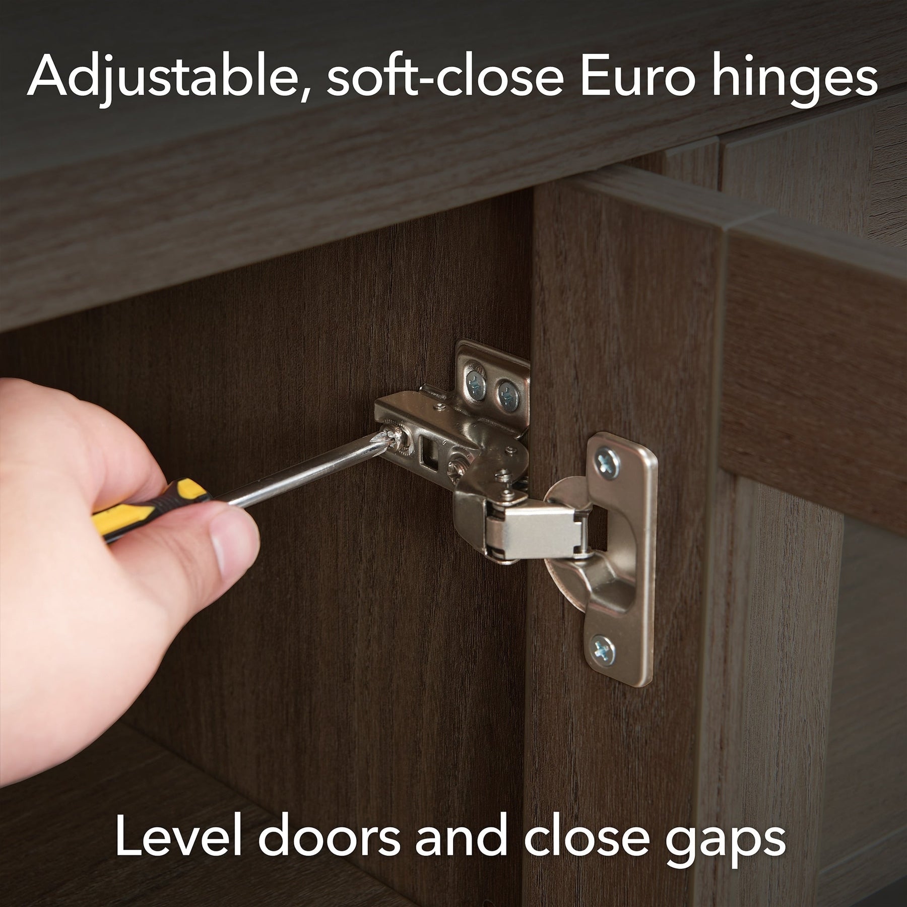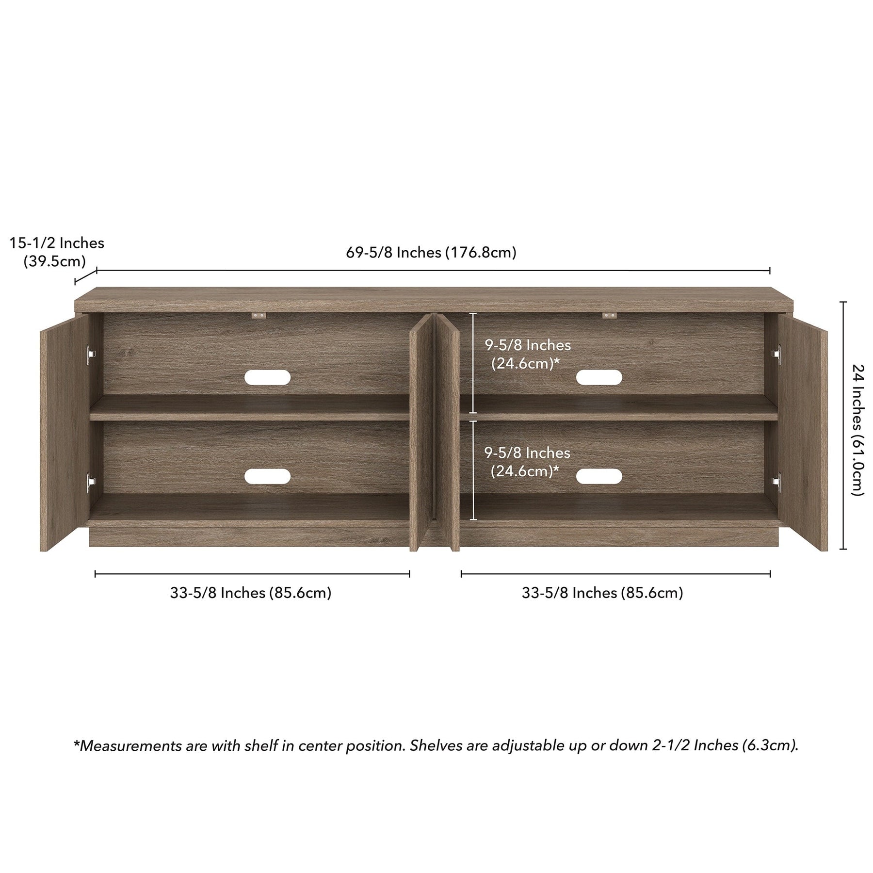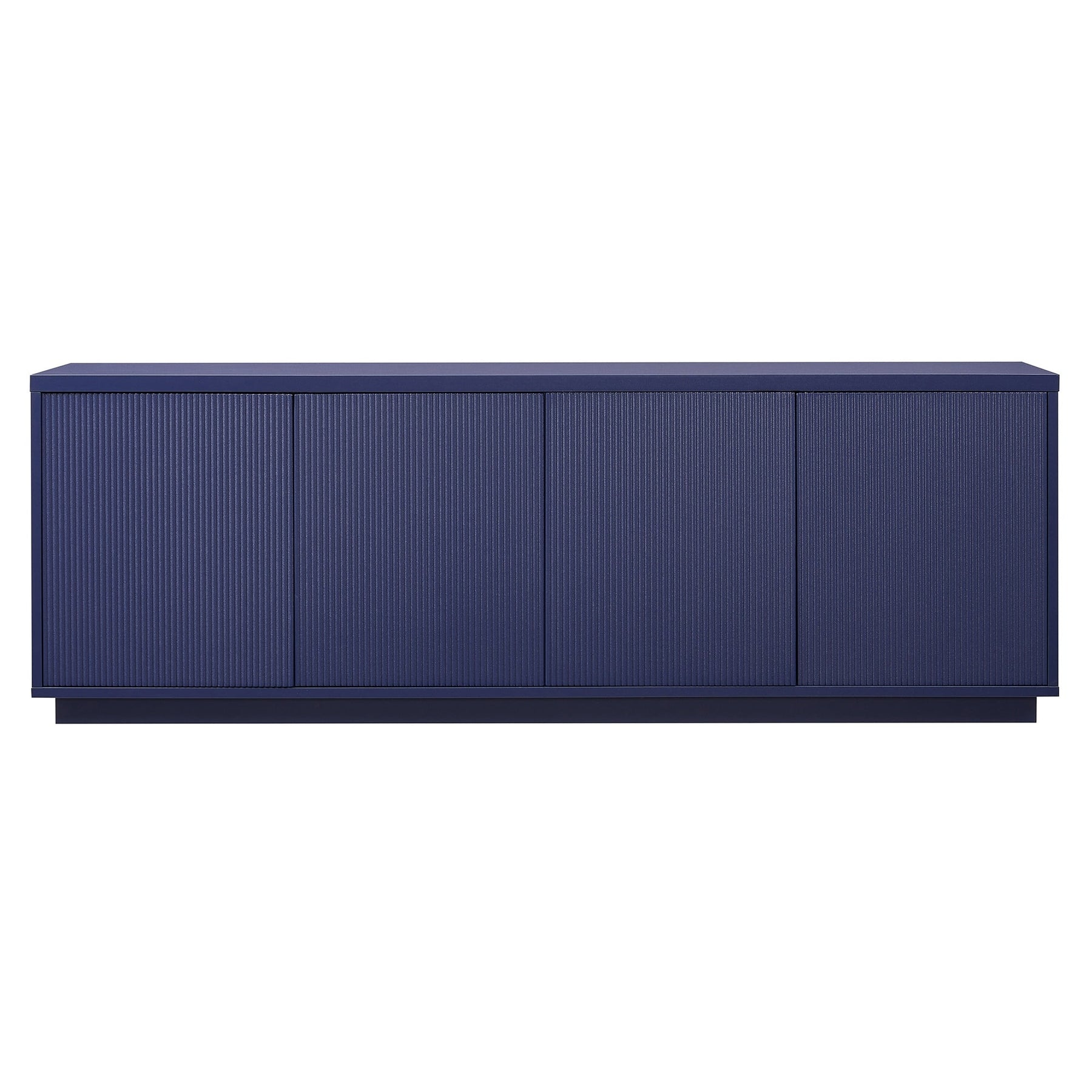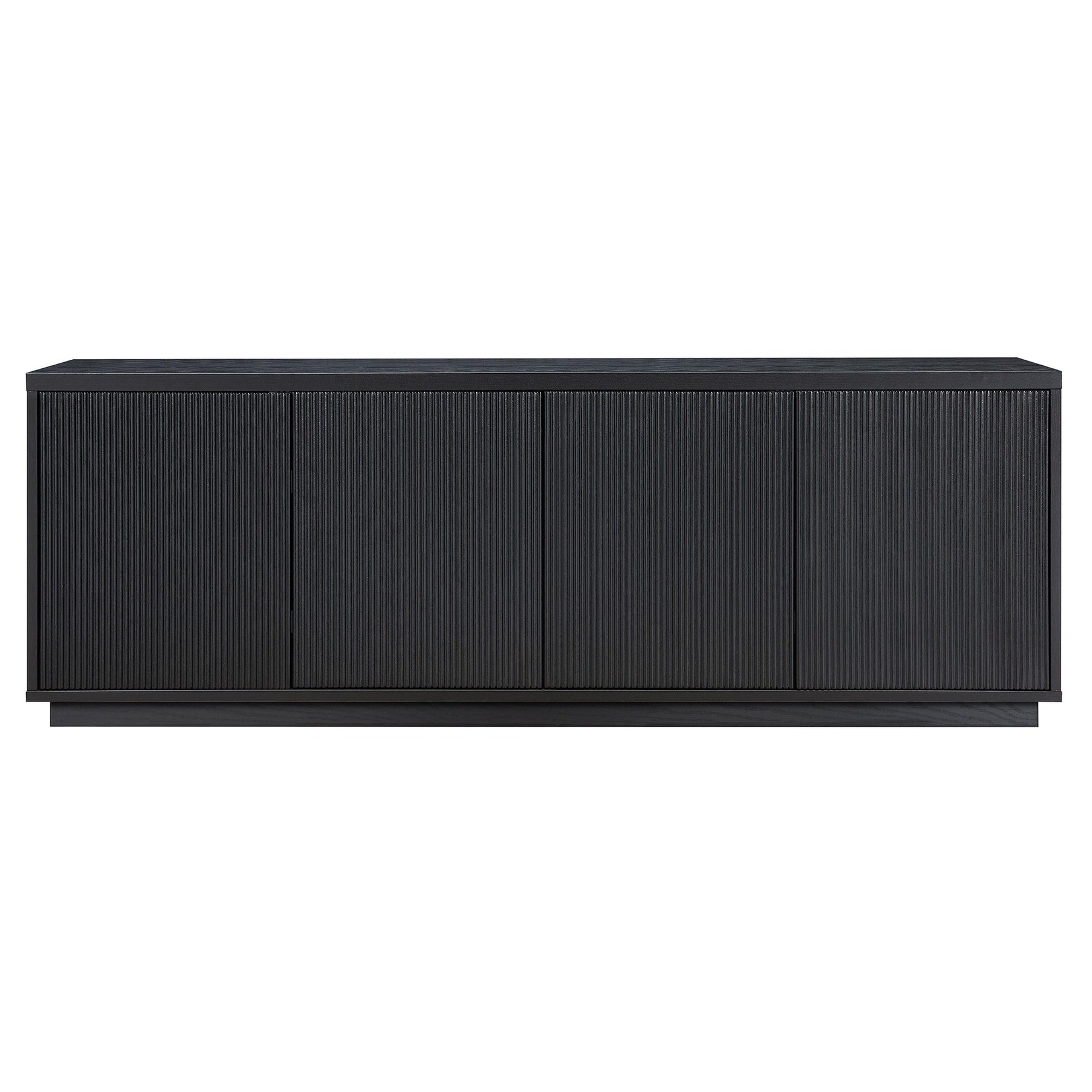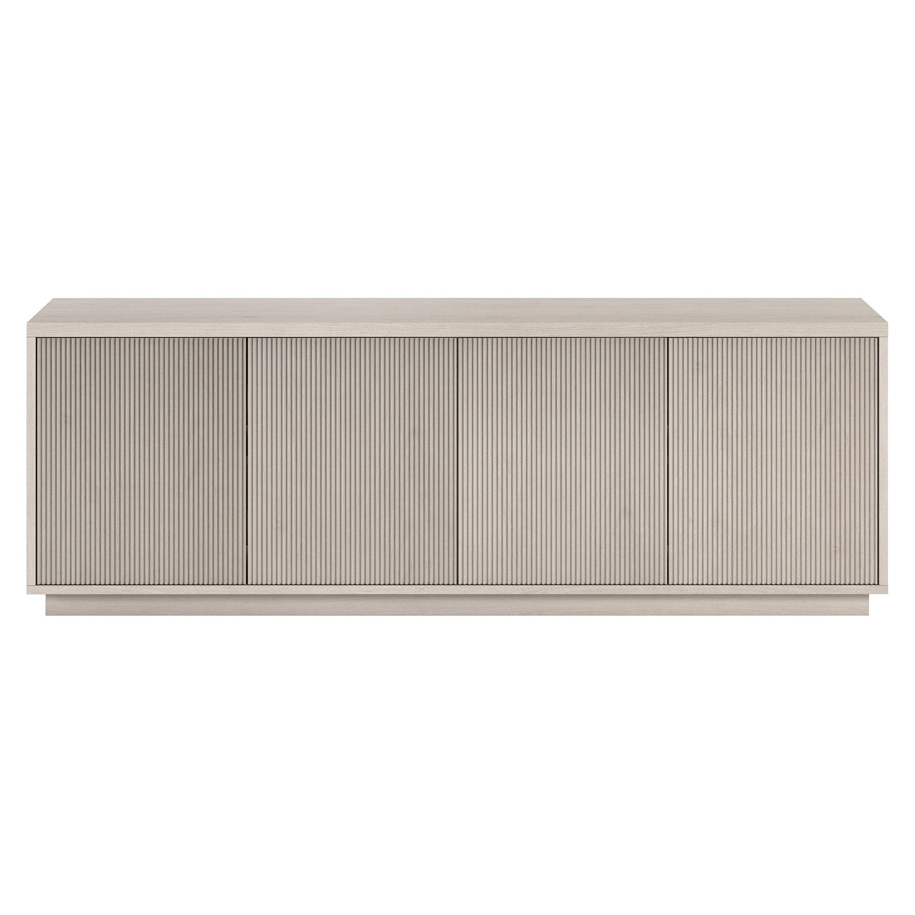 Texture et design tendance se marient dans ce meuble TV transitionnel. Avec sa finition imitation bois et ses portes texturées, ce meuble fera sensation dans votre salon, bureau ou salle de jeux. Son socle crée une illusion de transition harmonieuse avec le sol, comme s'il avait toujours été là. Son design moderne et contemporain comprend quatre portes entièrement fermées et quatre étagères intérieures, offrant un vaste espace de rangement pour vos appareils électroniques, jeux, livres et bien plus encore.