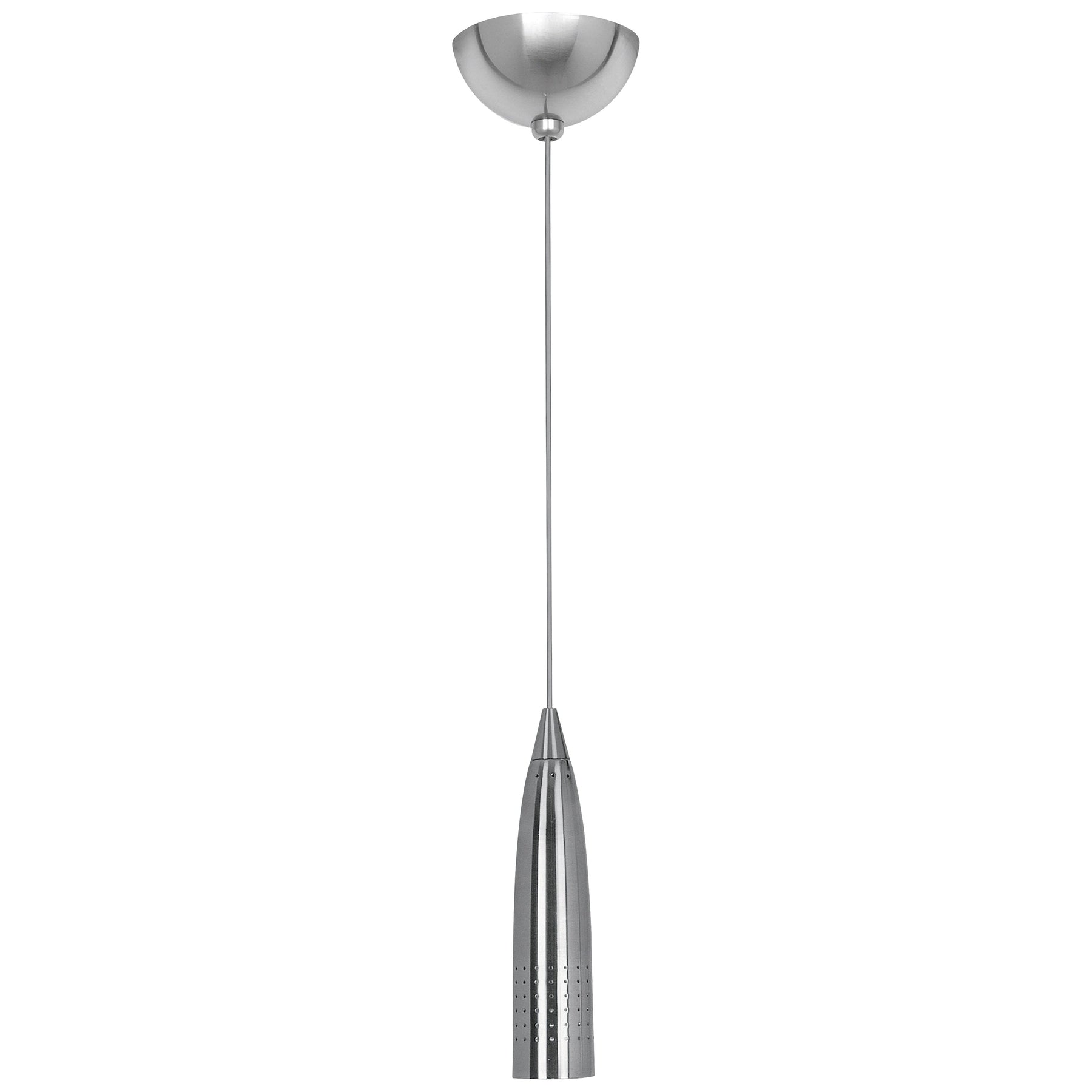 La suspension Odyssey en acier, avec ses perforations spéciales, offre un éclairage latéral spectaculaire. Sa diffusion contrôlée vers le bas assure un éclairage fonctionnel. Ce luminaire est équipé d'une prise Uni-Jack compatible avec la plupart des canopées multiports et systèmes de rails. Il est également équipé d'un transformateur classe 2 pour montage dans le boîtier de jonction et fonctionne uniquement avec des lampes halogènes basse tension de 50 watts.