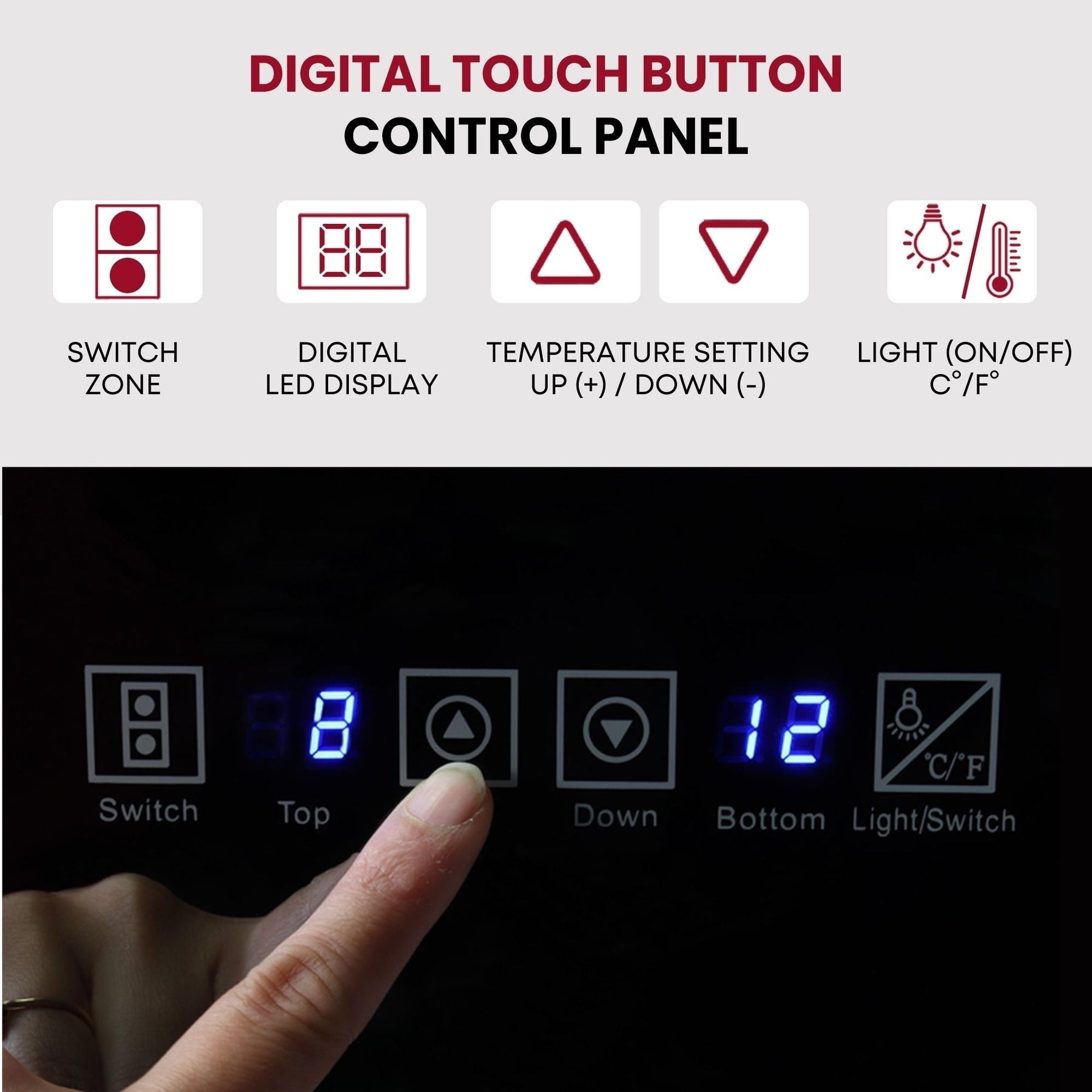 Conservez vos vins préférés à la température idéale grâce à la cave à vin de luxe, élégante et abordable de Koolatron. Cette cave à vin thermoélectrique de 18 bouteilles, compacte, avec clayettes amovibles, éclairage LED et verre anti-UV, conserve vos vins en toute sécurité et prêts à être dégustés. Conservez jusqu'à 8 bouteilles de vin rouge dans la zone supérieure, entre 12 et 18 °C, et jusqu'à 10 bouteilles de vin blanc ou pétillant dans la zone inférieure, entre 8 et 18 °C.