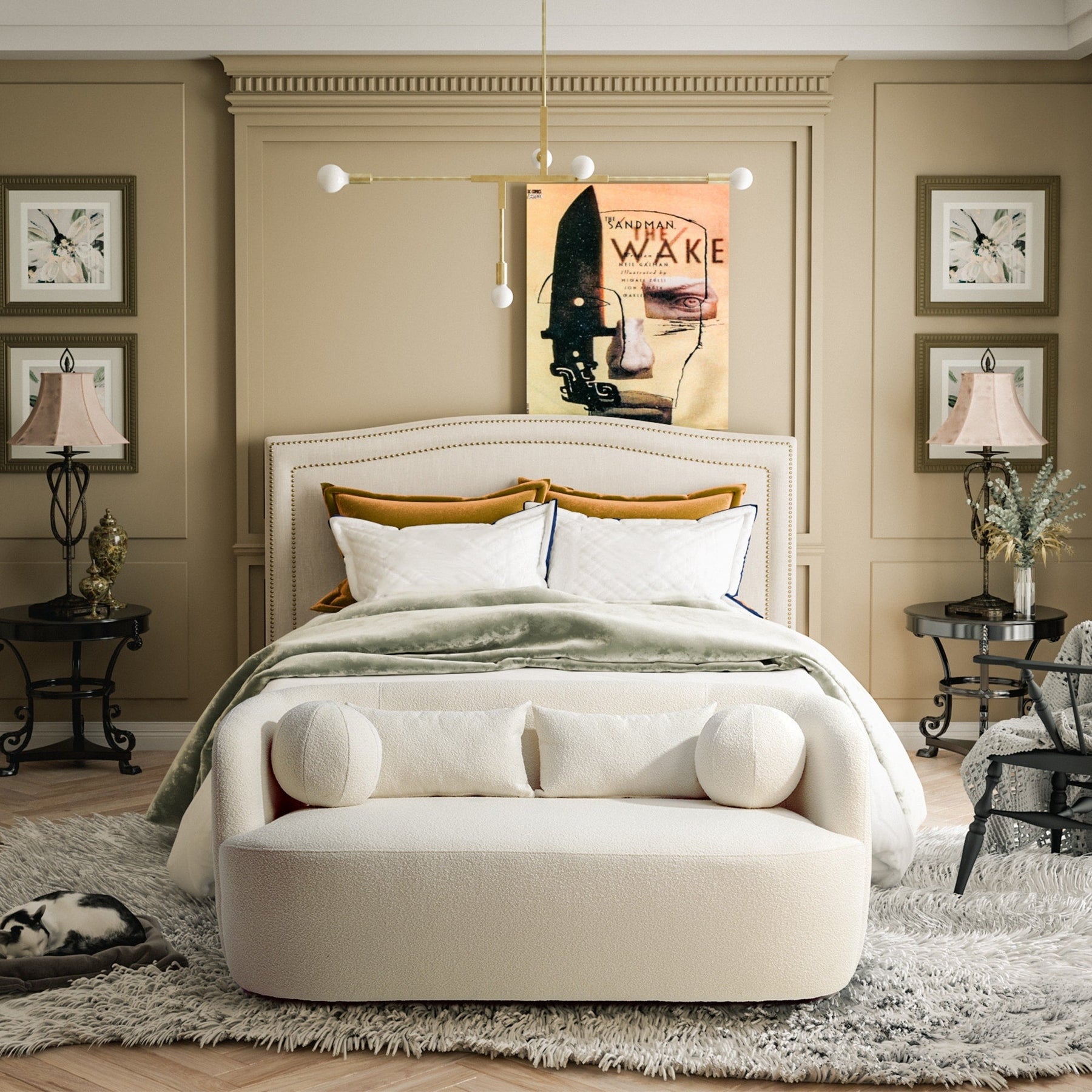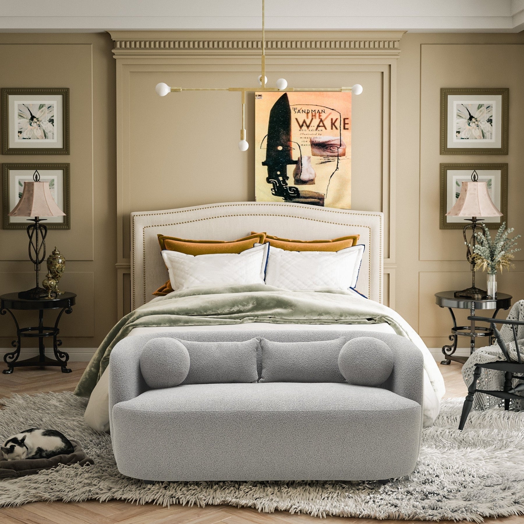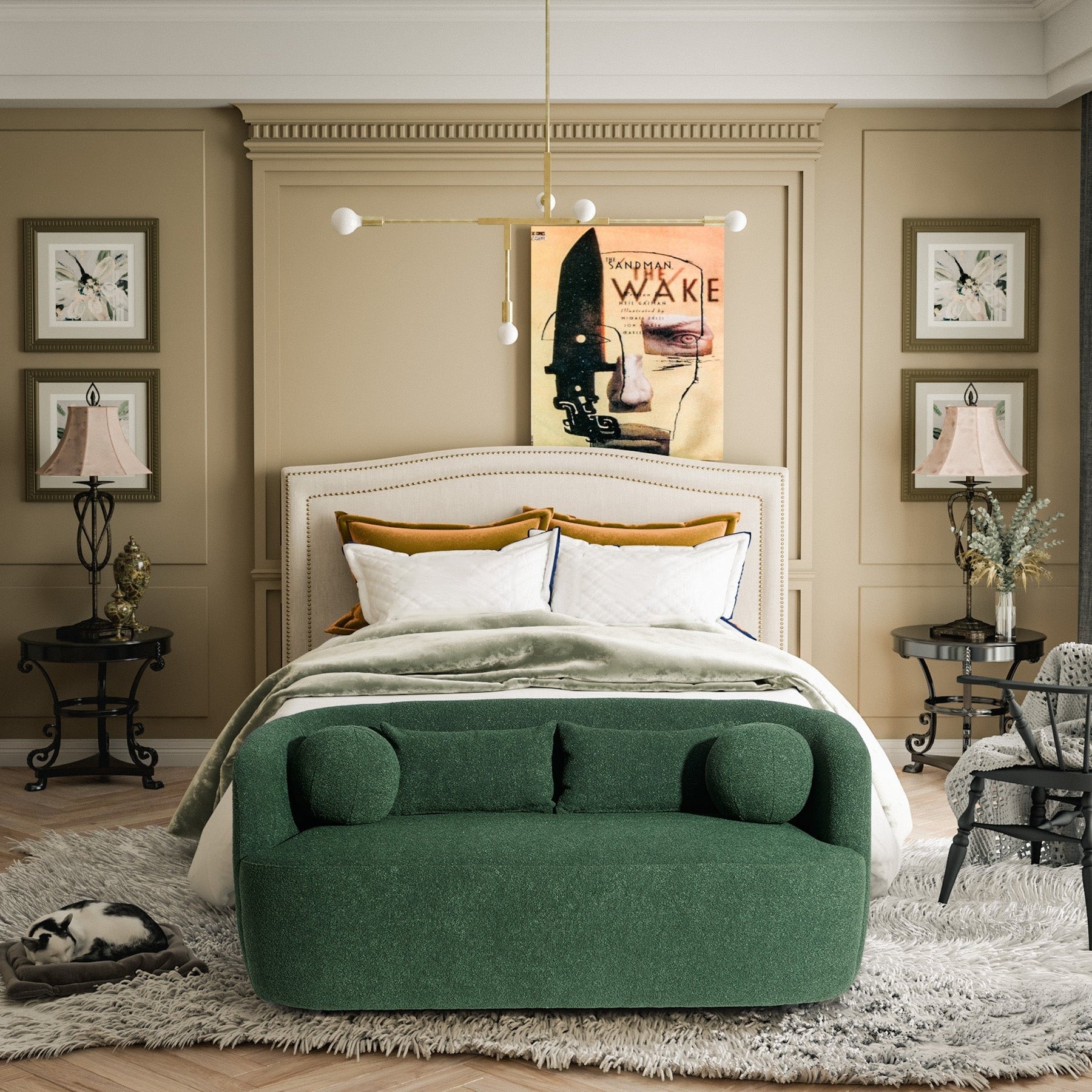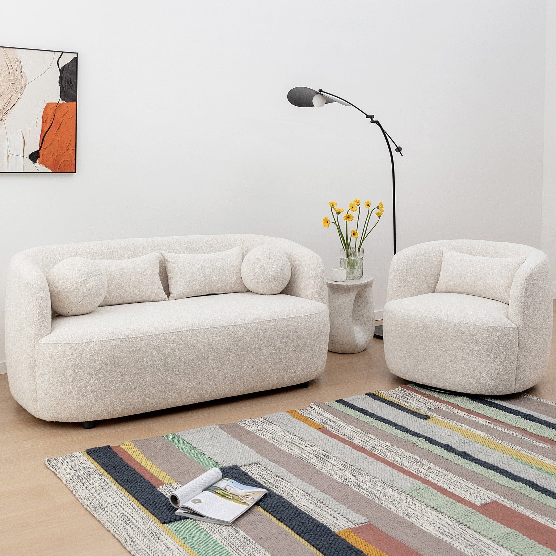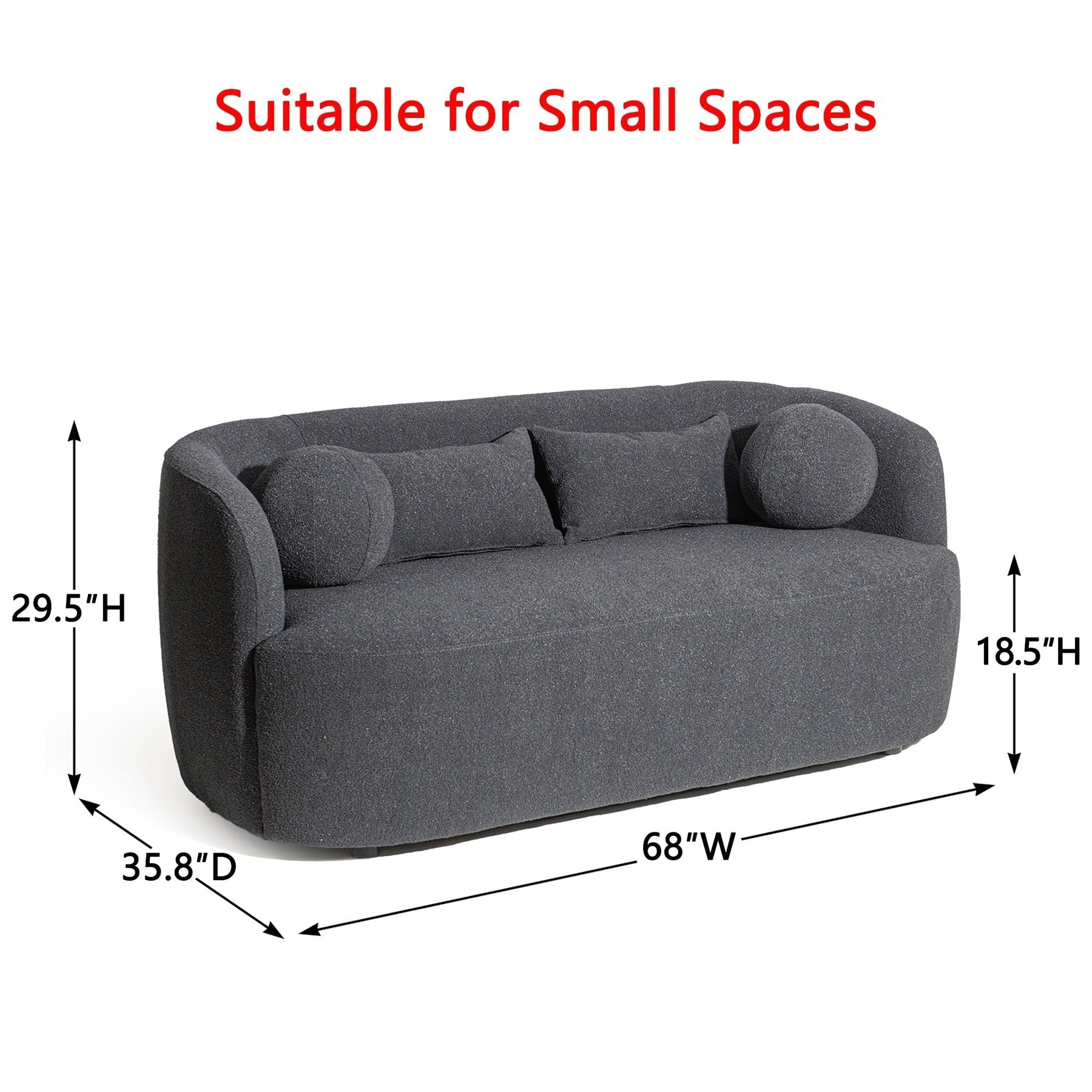 Ce canapé causeuse est un meuble magnifique inspiré du design moderne du Moyen Âge. Il est fourni avec quatre coussins, deux coussins carrés et deux coussins sphériques, offrant un confort et un soutien exceptionnels pour le dos et la nuque. Grâce à ses dimensions compactes, ce canapé bouclé est idéal pour les petits espaces et peut accueillir confortablement jusqu'à deux personnes. Sa structure robuste et naturelle est recouverte d'un rembourrage en mousse et d'un tissu bouclé résistant, garantissant confort et durabilité.