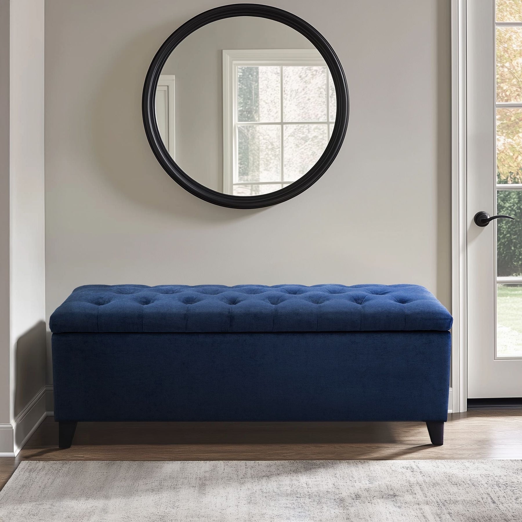 Le banc de rangement rembourré Shandra de Madison Park allie style et fonctionnalité grâce à son plateau capitonné et son spacieux compartiment intérieur (13,5 m de large x 4,6 m de profondeur x 3,3 m de haut) pour un rangement dissimulé. Idéal pour les entrées, les chambres, les salons, les chambres d'enfants et les petits espaces, il offre à la fois assise et rangement. Deux mécanismes à ressort, un à chaque extrémité, assurent un mouvement silencieux, fluide et contrôlé, empêchant le couvercle de claquer et améliorant sa durabilité. Revêtu d'un tissu doux et résistant, il est doté d'un couvercle rembourré, de pieds en bois massif et d'une construction robuste. Montage facile : il suffit de fixer les pieds. Adoptez ce banc polyvalent dès aujourd'hui !