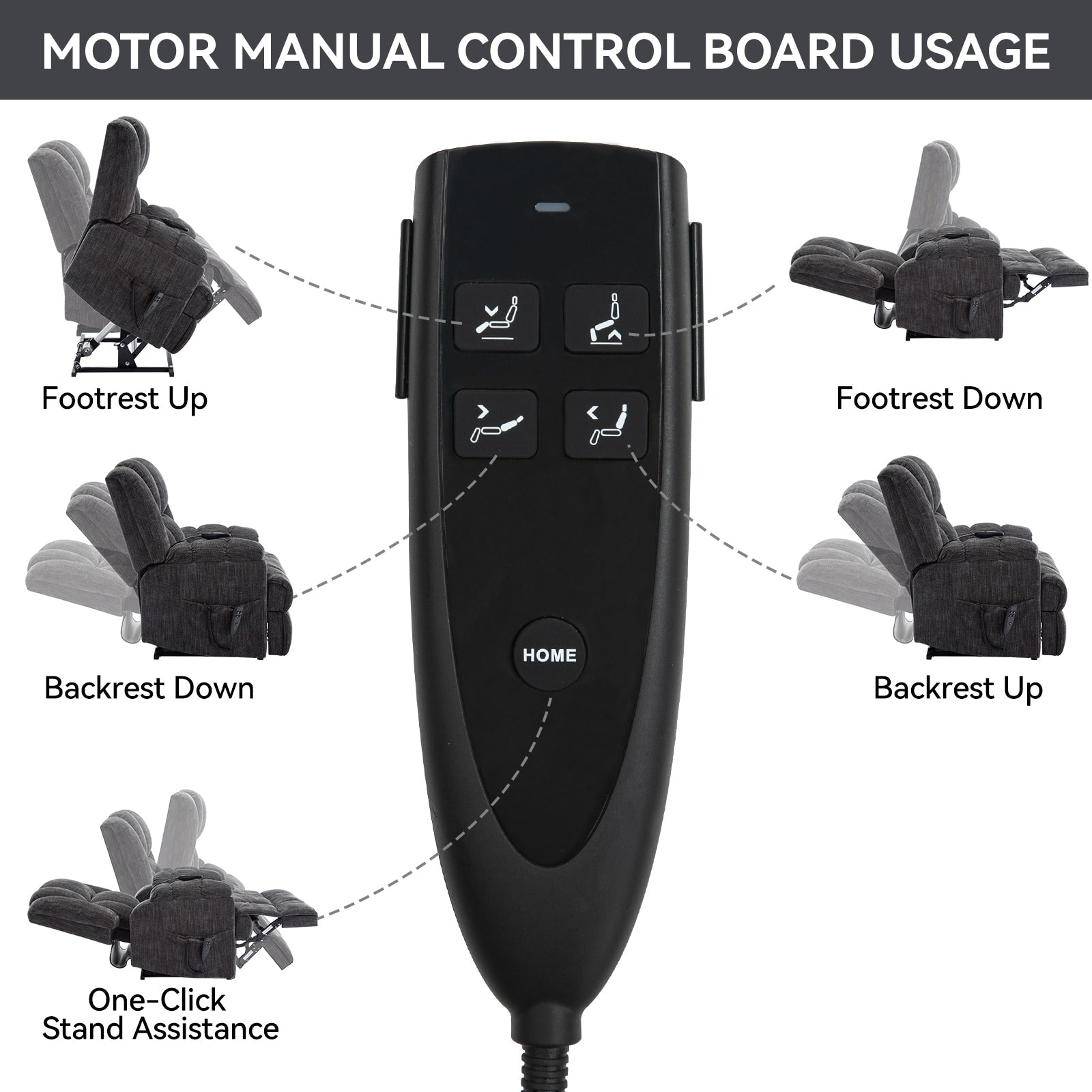 Fauteuil releveur électrique à double moteur : Ce fauteuil est équipé d'un système à double moteur permettant un contrôle indépendant du dossier et du repose-pieds. D'une simple pression sur la télécommande, vous pouvez incliner le fauteuil à près de 180 degrés ou activer la fonction releveur, qui vous aide à vous lever en douceur et en silence. Idéal pour les personnes âgées, celles souffrant de problèmes d'équilibre aux jambes ou au dos, ou celles qui se remettent d'une opération.