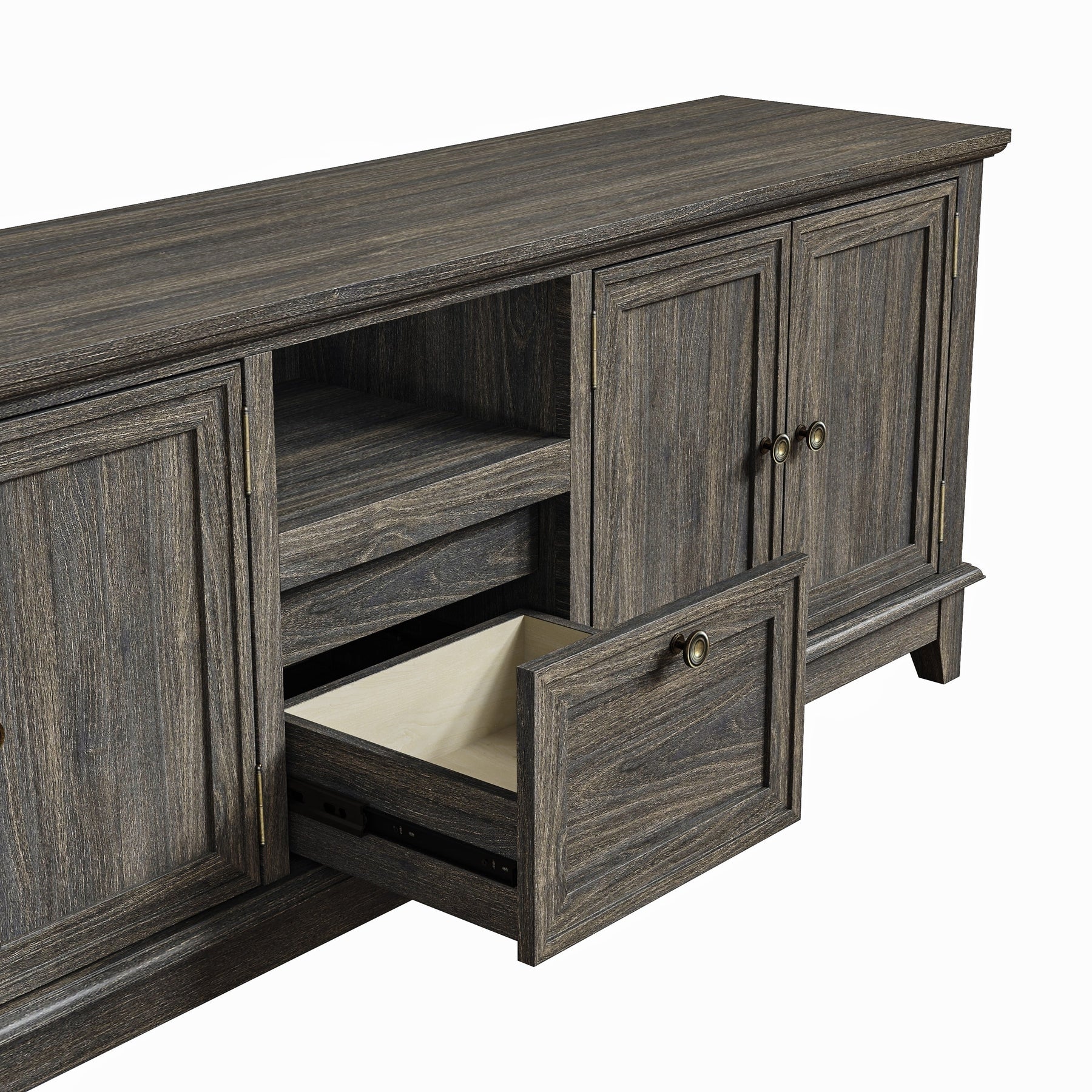 Sublimez votre espace de divertissement avec notre meuble TV 72 pouces, soigneusement conçu pour allier style et fonctionnalité. Doté de spacieux placards à gauche et à droite, d'étagères réglables et d'un grand tiroir central avec compartiment supplémentaire dissimulé, ce meuble TV offre un vaste espace de rangement pour tous vos essentiels multimédia. Le plateau texturé effet bois et la finition bleu vif des placards rompent la monotonie et apportent une touche de sophistication à votre salon. Les étagères réglables et les charnières à montage rapide facilitent le montage et vous font gagner un temps précieux.
