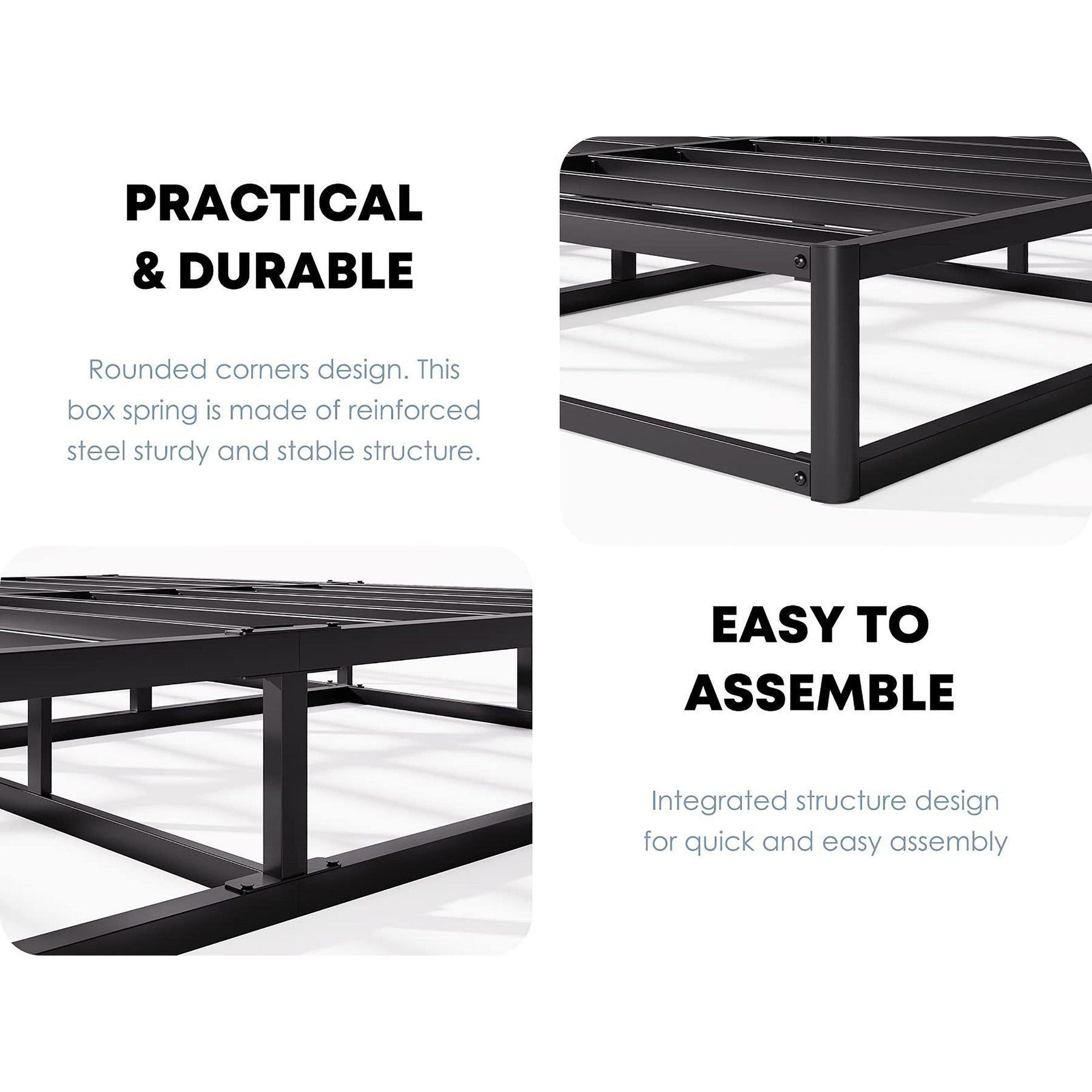 Soutien et longévité exceptionnels : Des lattes métalliques robustes combinées à une structure en acier renforcé améliorent la durabilité, supportant jusqu'à 363 kg pour un sommier simple et 680 kg pour un sommier double. Ce sommier protège votre matelas et prolonge sa durée de vie.