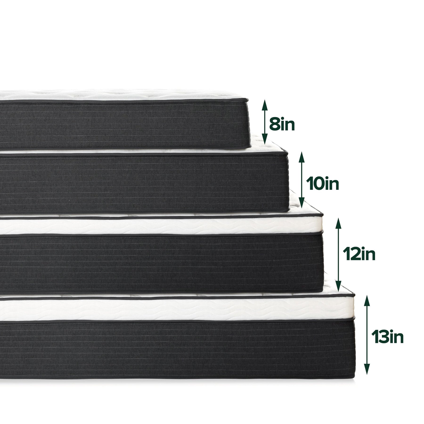 Garantie limitée de 10 ans sans souci incluse ; le matelas simple supporte un poids maximum de 250 lb, tandis que toutes les autres tailles peuvent supporter jusqu'à 500 lb