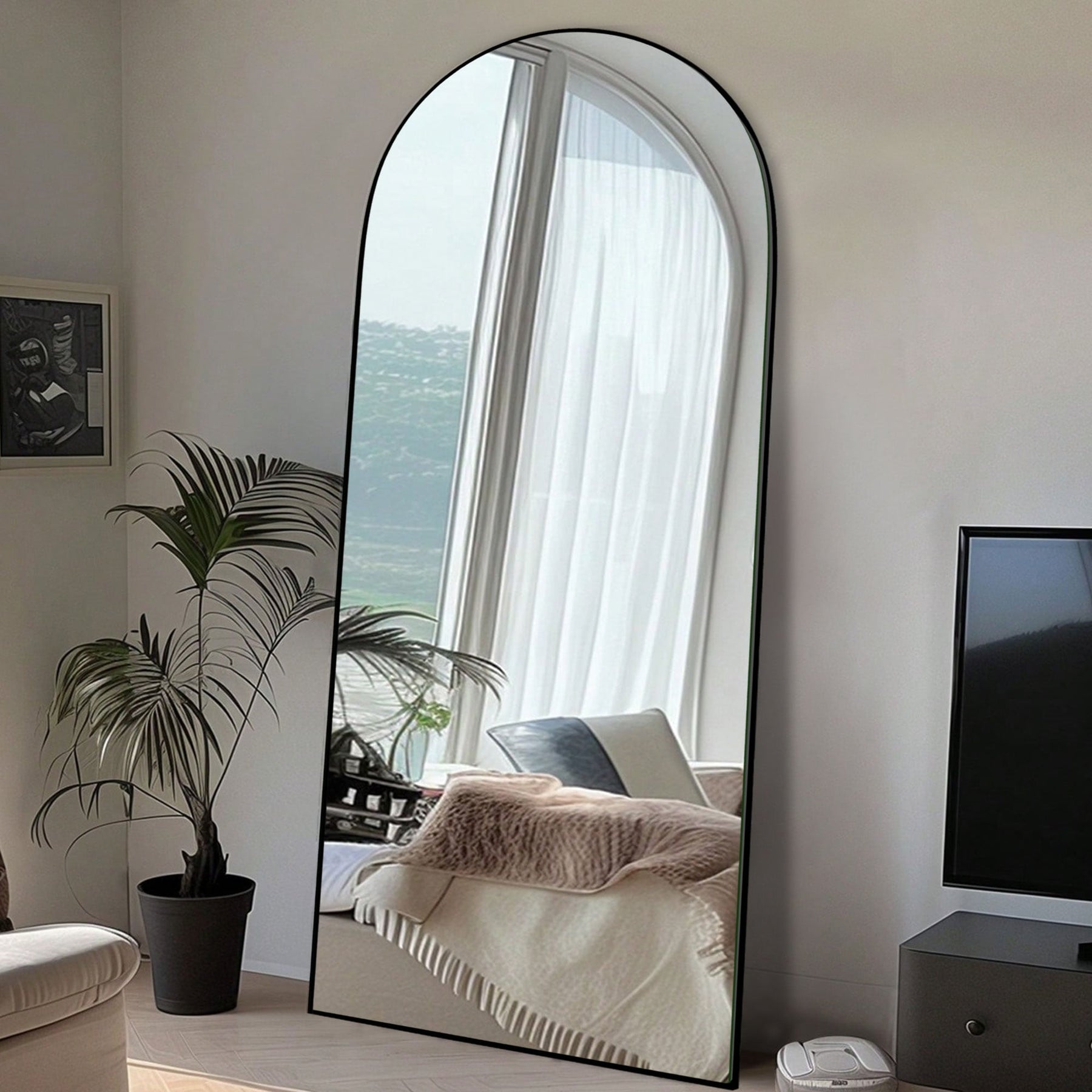 Illuminez n'importe quelle pièce de votre maison avec ce grand miroir moderne et élégant. Son design arqué unique et son cadre épuré en font une pièce maîtresse qui ajoute profondeur et dimension à n'importe quelle pièce. Il reflète les objets présents ainsi que la lumière naturelle ou artificielle, agrandissant et illuminant l'espace. Idéal pour une chambre, un salon ou un dressing, ce miroir deviendra rapidement la pièce maîtresse de votre décoration, selon vos goûts. Un excellent rapport qualité-prix : un indispensable pour la maison !