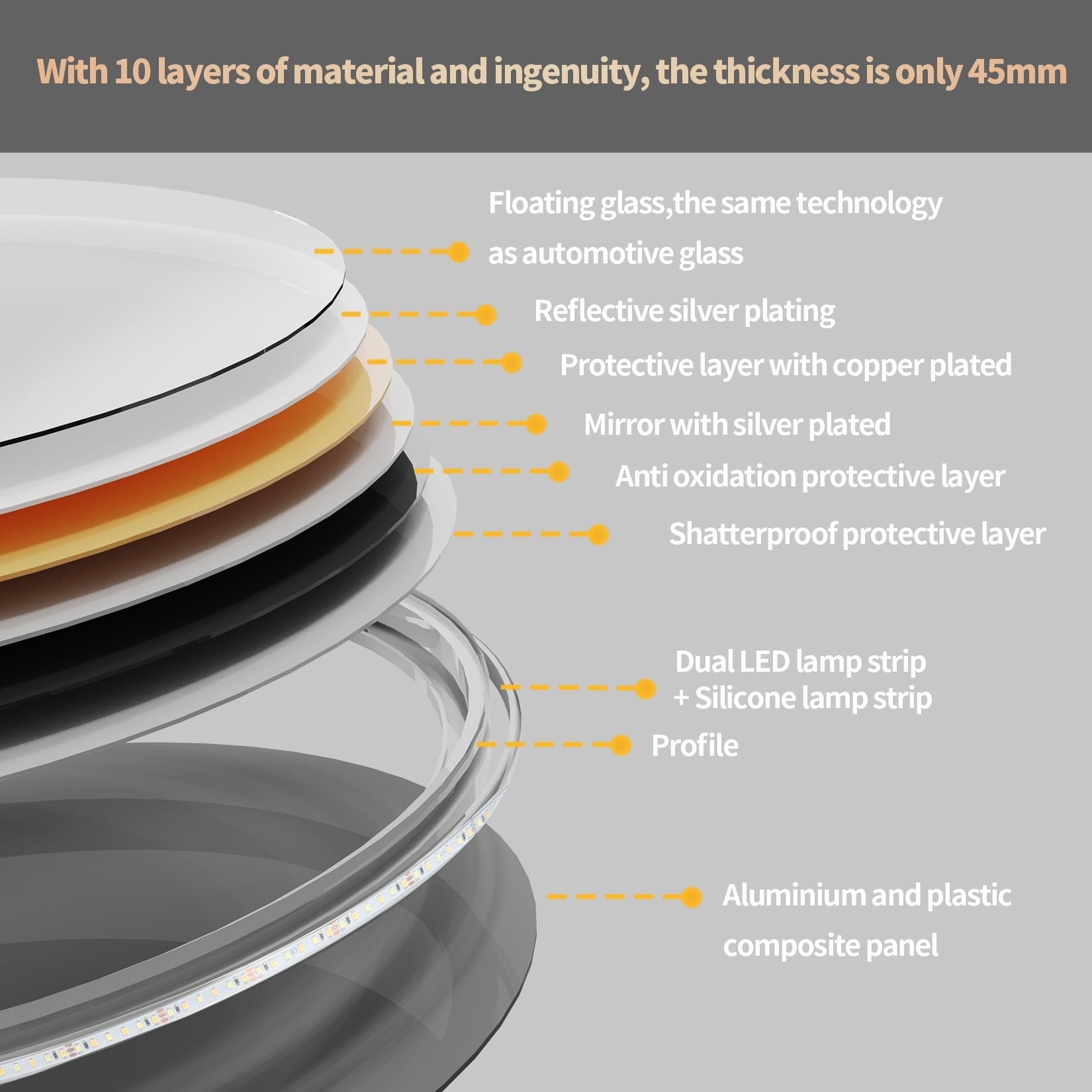 • Matériau : cadre en alliage d'aluminium à 20 % + miroir en verre HD à 80 %