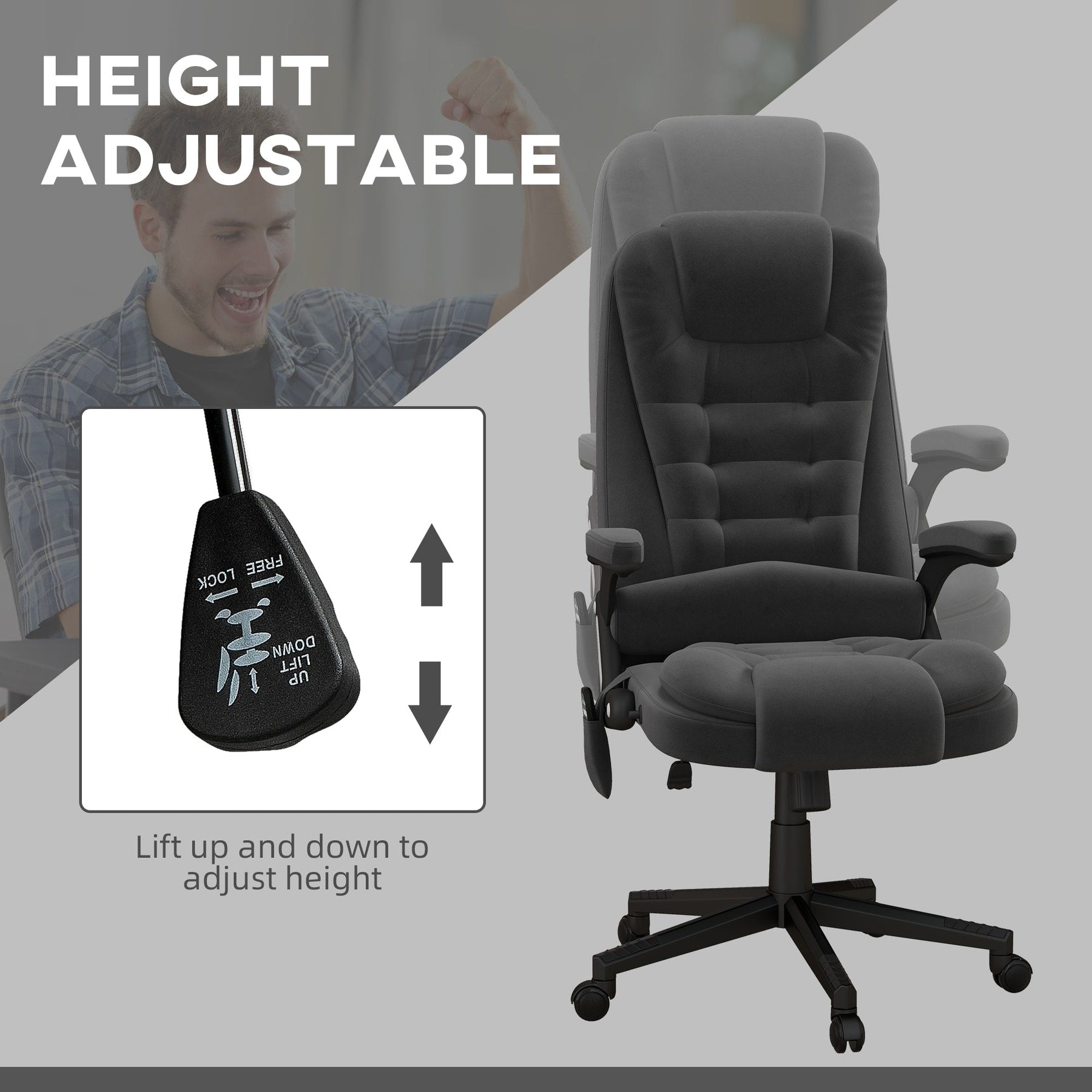 Fauteuil de bureau HOMCOM à 6 points de massage vibrant et chauffant, dossier haut en velours avec dossier inclinable