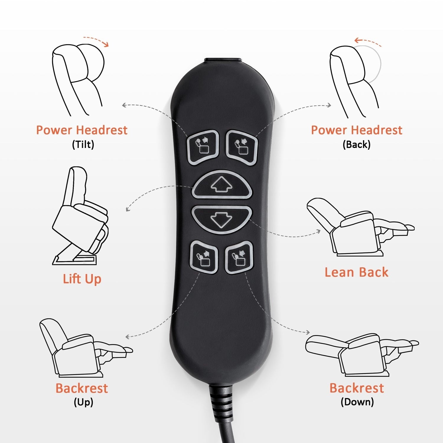Appuie-tête électrique : Bien que les appuis-tête réglables puissent être utilisés pour un confort personnalisé en position assise droite, ils sont spécialement conçus pour permettre à une personne inclinée en arrière de regarder vers l'avant, par exemple vers la télévision, sans forcer la tête ou le cou