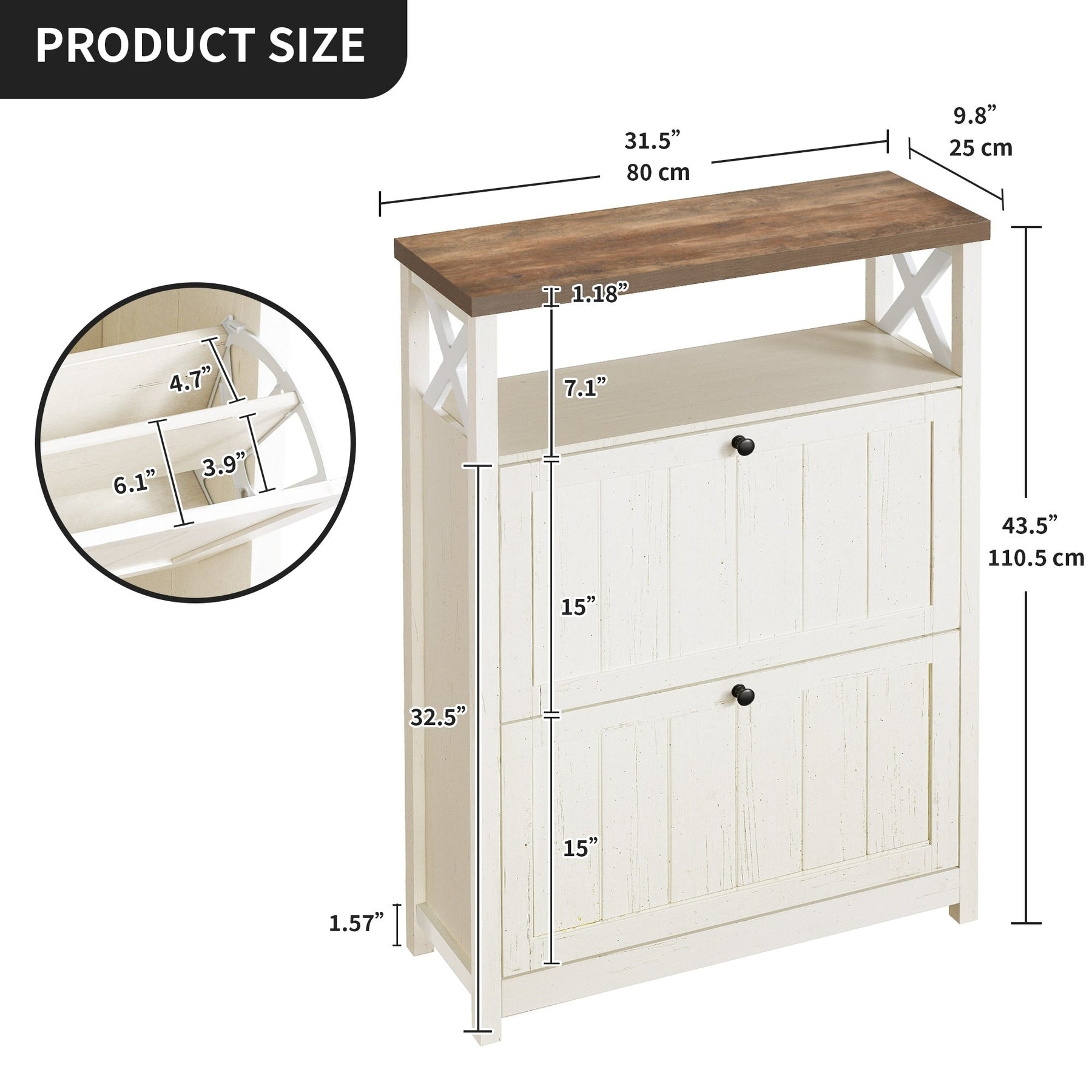 Notre meuble à chaussures fin, avec sa finition blanc chaud, est conçu pour optimiser l'espace et désencombrer votre entrée. Il est doté de tiroirs rabattables pour ranger et protéger vos chaussures, d'un compartiment ouvert et d'un rangement supérieur pour les essentiels du quotidien. Sa conception robuste, avec son panneau épais et ses pieds en bois, assure stabilité et résistance à la flexion, idéal pour les charges lourdes.