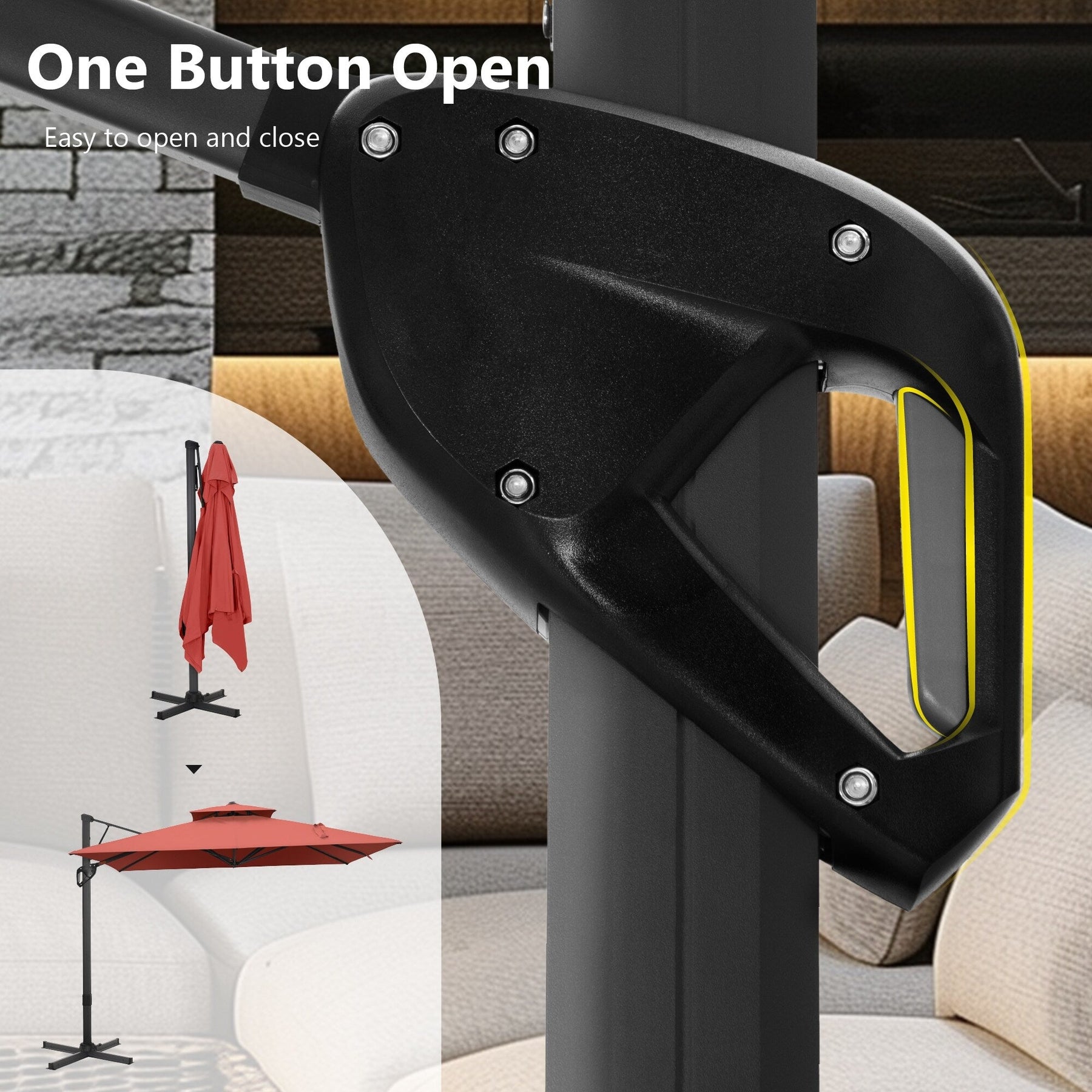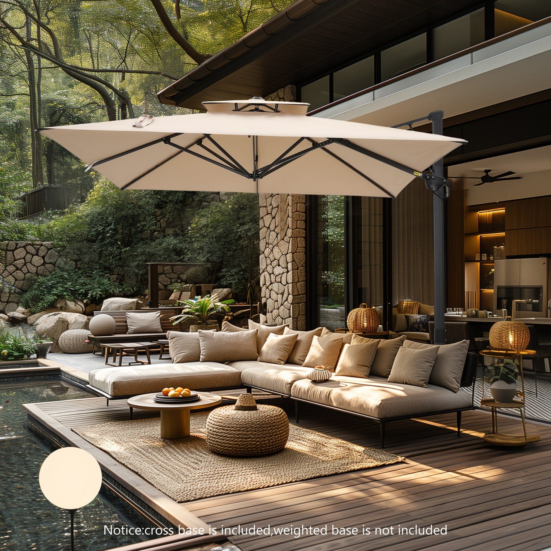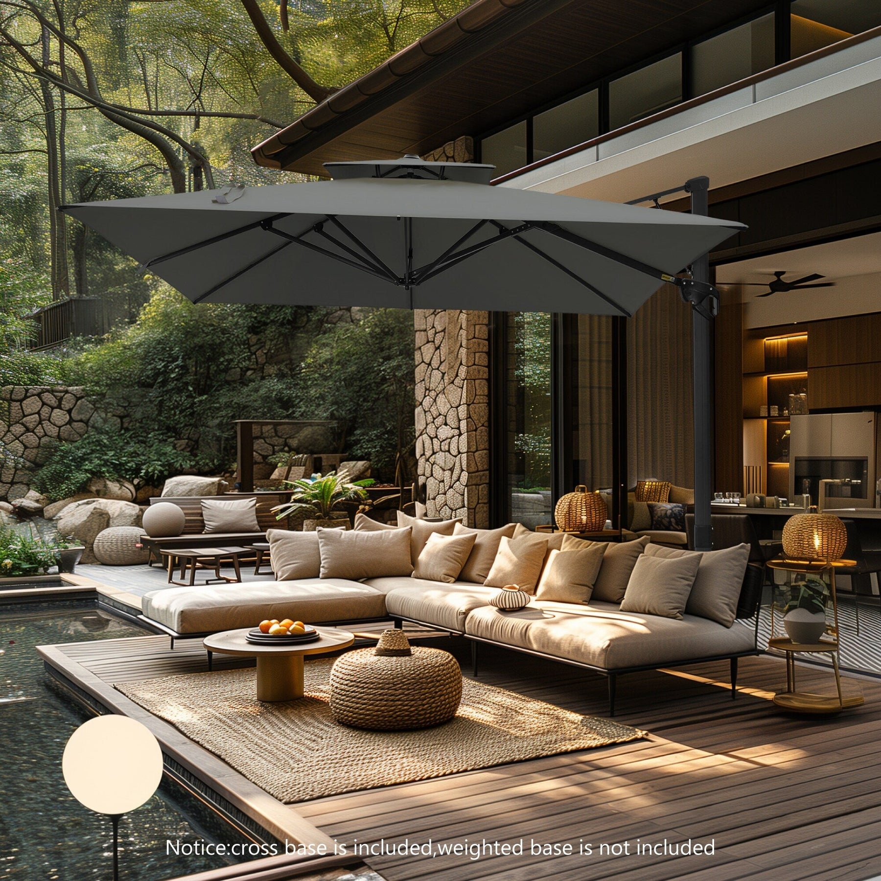 3. Équipé d'un moyeu rotatif à 360 degrés, le parasol pivote librement sans déplacer la base. Il permet de régler la position de l'ombre par simple rotation de la base.