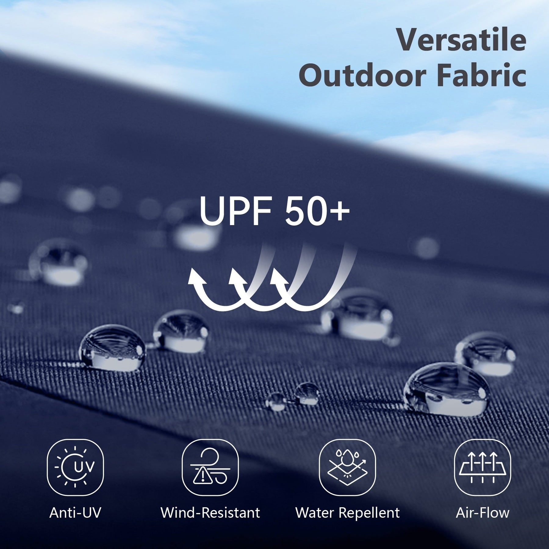 2. Fabriqué en tissu teint masse de 250 g avec revêtement PA pour une durabilité accrue, une imperméabilité, une résistance au soleil et une résistance à la décoloration. Ce tissu teint masse garantit une stabilité des couleurs jusqu'à 3 ans.