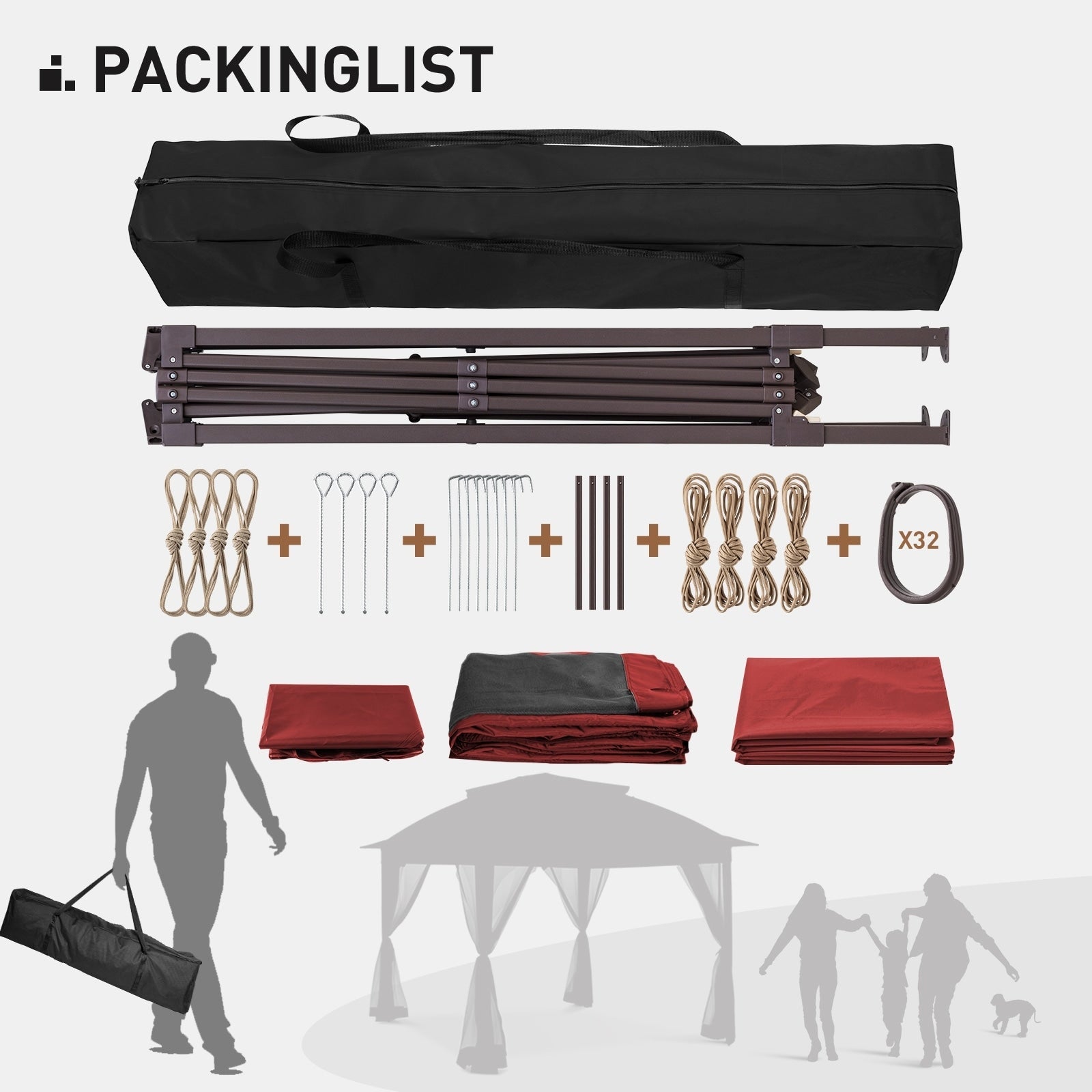 Toit ventilé à deux niveaux - Ce gazebo est doté d'un toit à deux niveaux conçu pour vous offrir un espace confortable et aéré, vous évitant ainsi une sensation d'étouffement, même en été. L'avant-toit prolongé est soigneusement fini pour éviter l'accumulation de pluie. Ses dimensions de 3,3 m x 3,3 m offrent une couverture de 11,8 m² et peuvent accueillir jusqu'à 6 personnes.