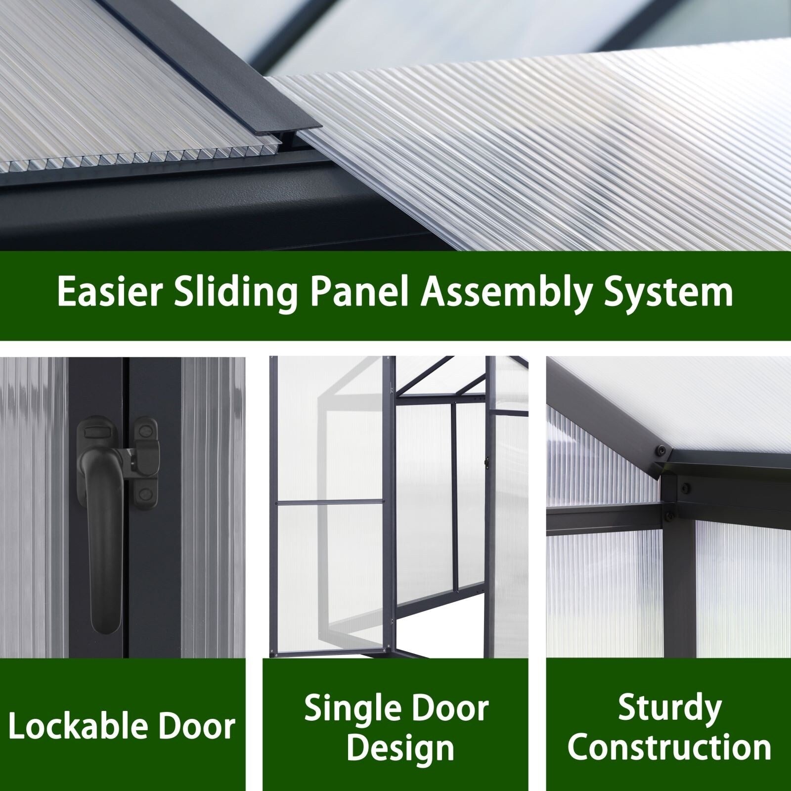 La serre de plain-pied est dotée d'une structure résistante à la rouille, garantissant durabilité et longévité. Cette conception vous permet d'accéder facilement à vos plantes et de les entretenir facilement.