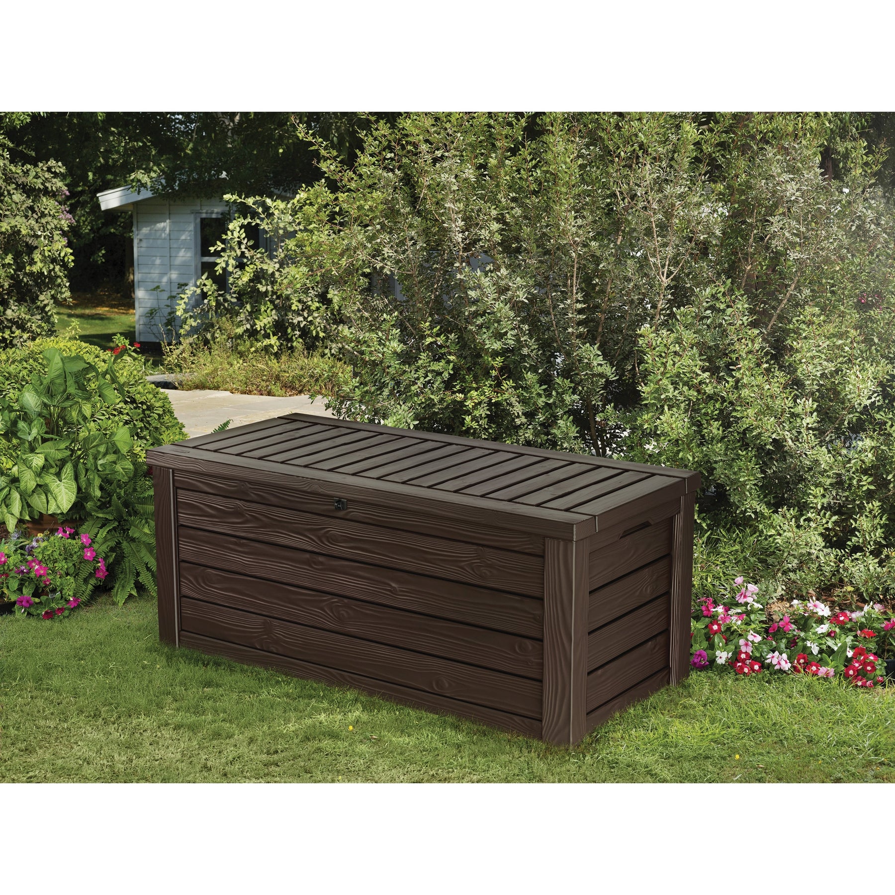 Grâce à sa grande capacité, il convient à tous les usages de stockage et s'adapte même à certains de vos plus gros articles comme les accessoires de piscine et les coussins de chaise longue.