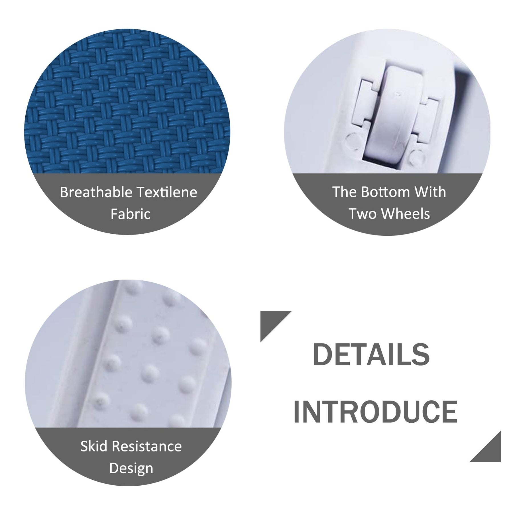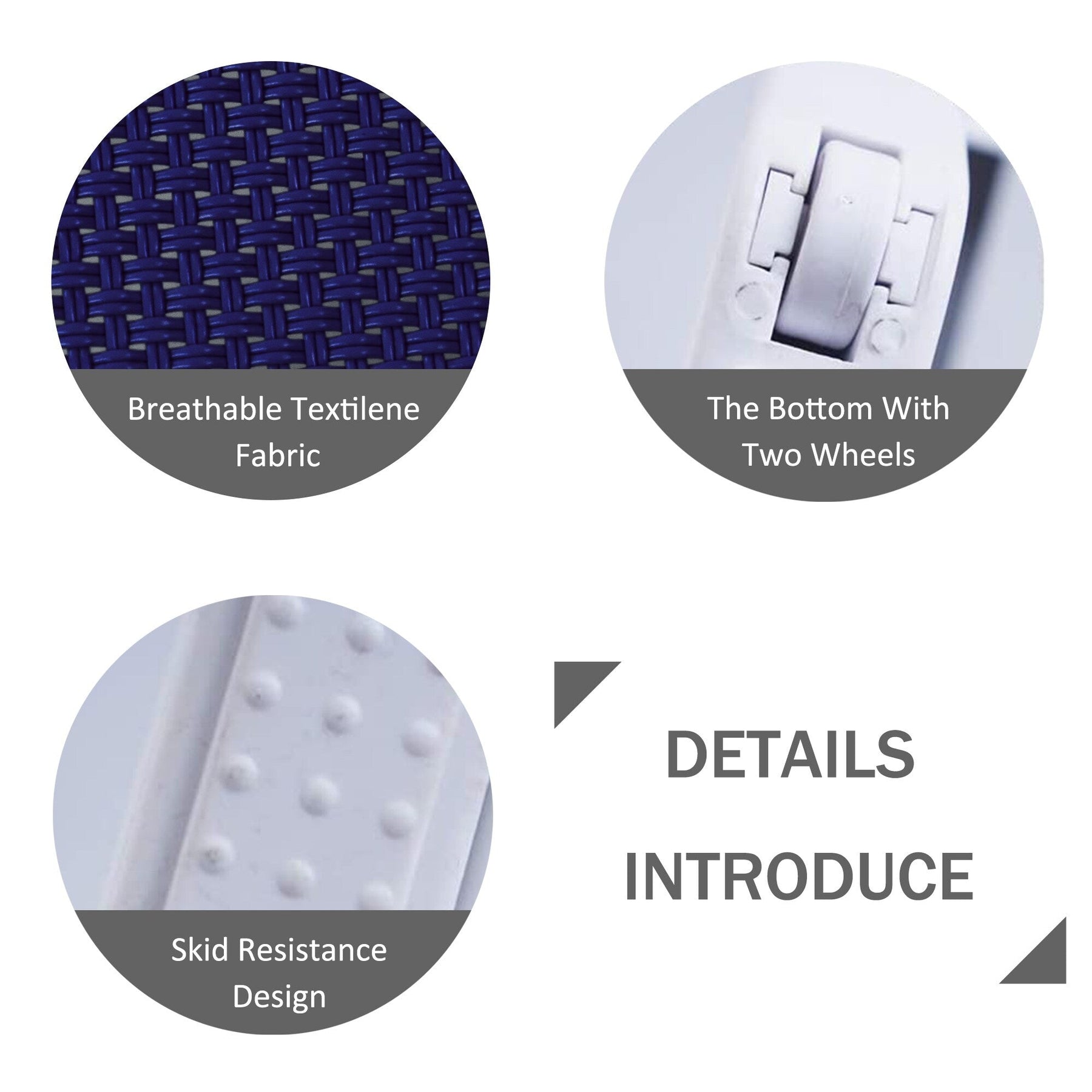 DURABLE : Fabriqué à partir d'un mélange de maille et de tissu polyester sur un cadre en aluminium pour plus de durabilité et de solidité. Les pieds sont en résine polypropylène robuste de haute qualité, tandis que le cadre est en aluminium. Résistant aux UV et à l'eau, il ne rouille pas et ne se détériore pas.