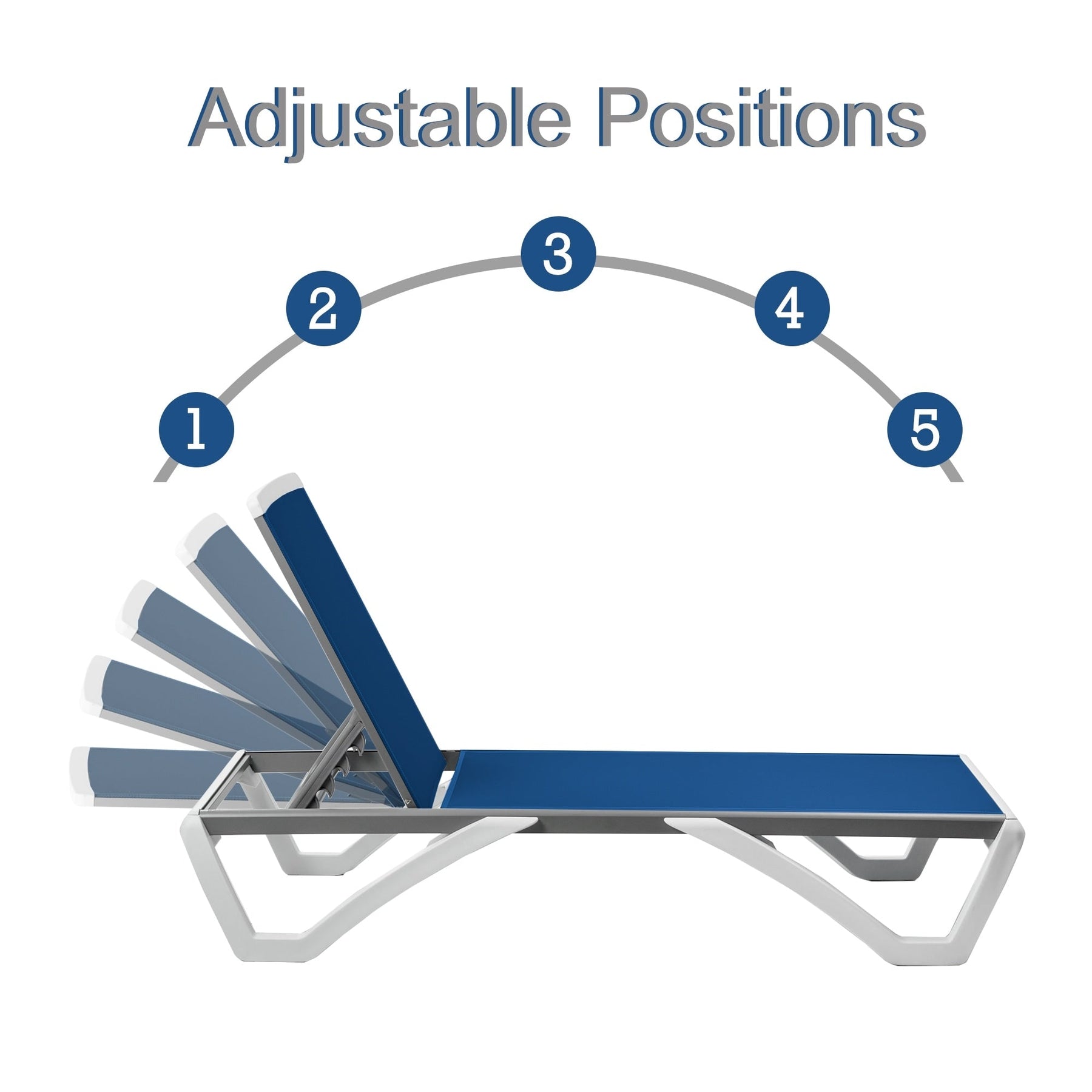 CONFORTABLE : La toile s'adapte à votre corps et ses alvéoles laissent respirer les fortes chaleurs. Le dossier réglable vous permet de choisir parmi cinq niveaux de confort personnalisés. Vous pouvez vous allonger sur le ventre pour profiter du soleil.