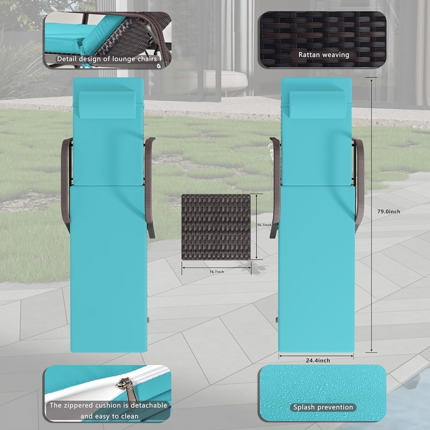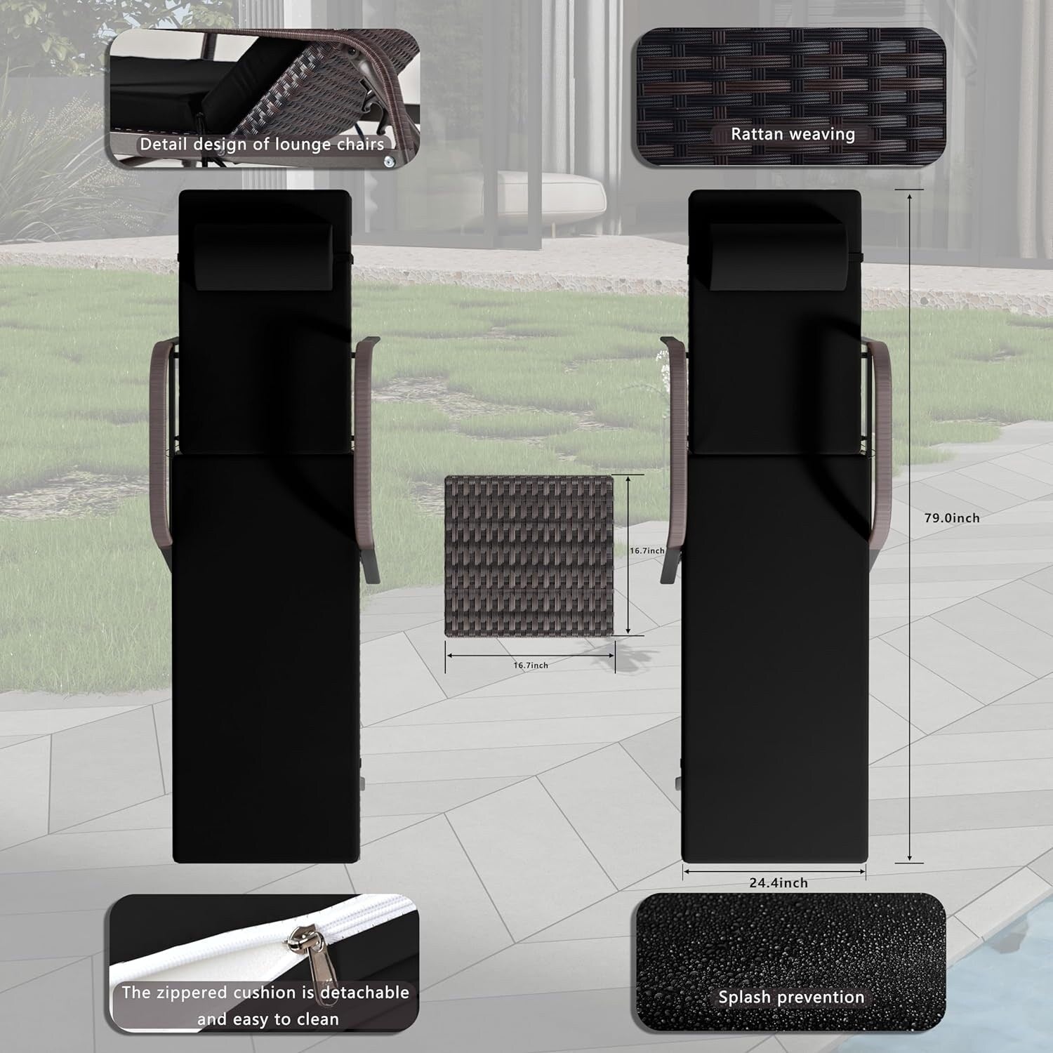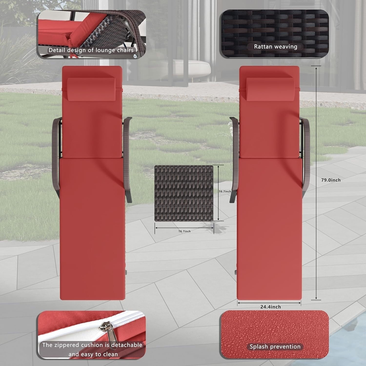 - Chaise longue x 2 : 23,8' x 80' x 32,1'