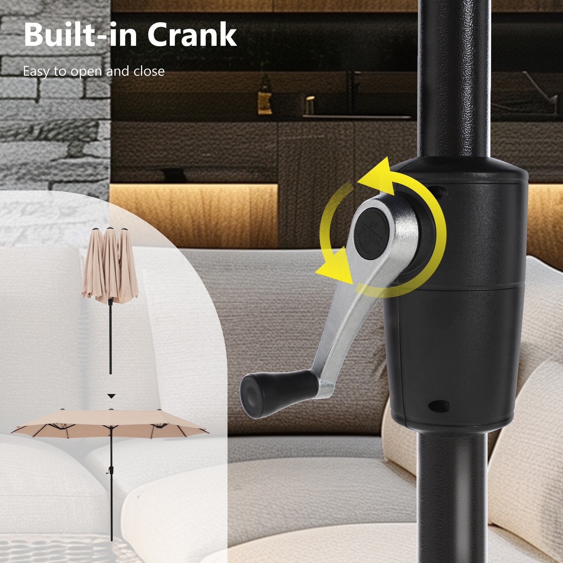 Parasol double face de 13 pieds avec toile en polyester 180 g et mât en aluminium de 1,5 pied