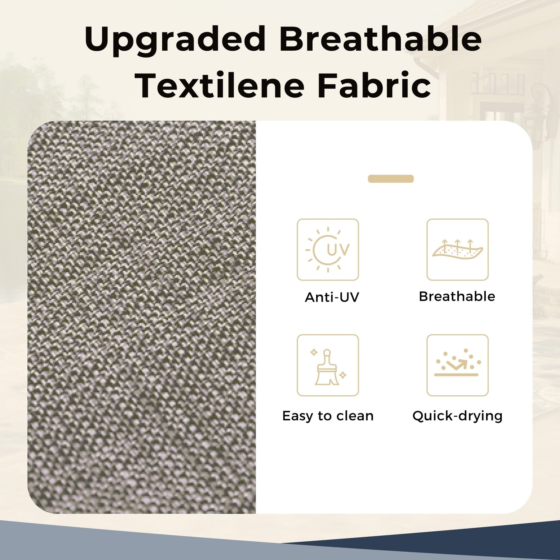 Sublimez vos réceptions en plein air avec cet ensemble de salle à manger de patio 8 pièces au design moderne et facile d'entretien. La table rectangulaire et les 6 fauteuils pivotants sont fabriqués en textilène épais et dotés d'une structure en acier thermolaqué pour une assise confortable et durable. Un parasol double face de 4 mètres complète l'ensemble, rendant cet ensemble idéal pour les jardins, les vérandas et les cours.
