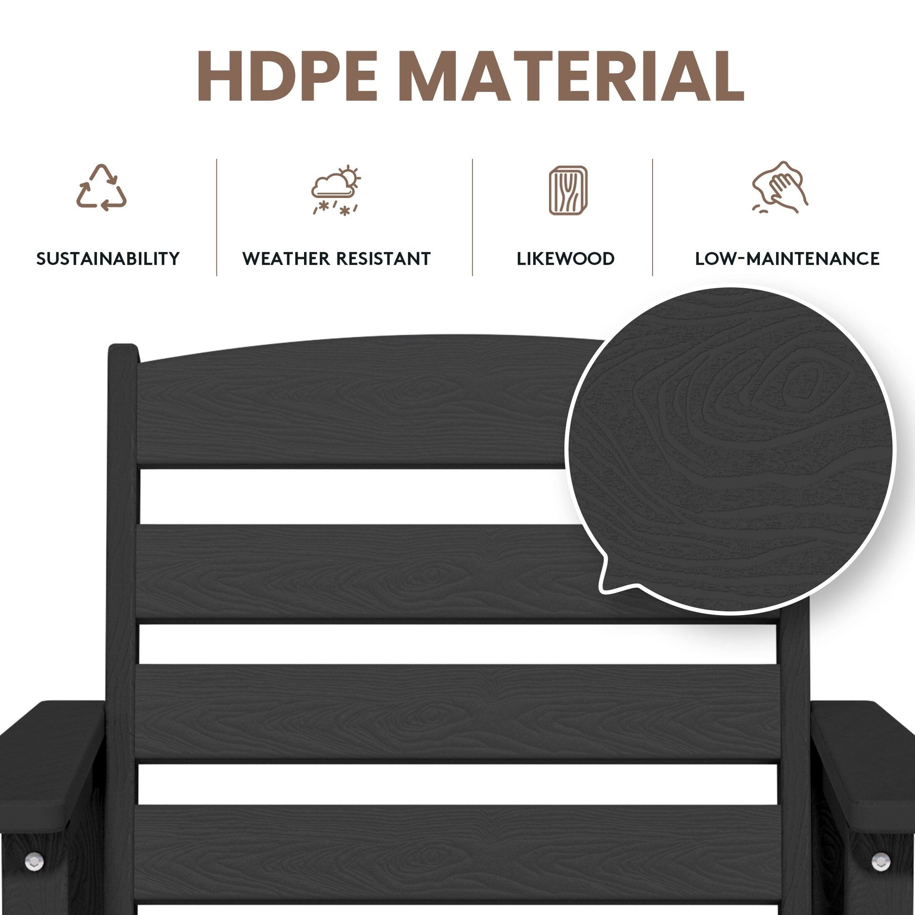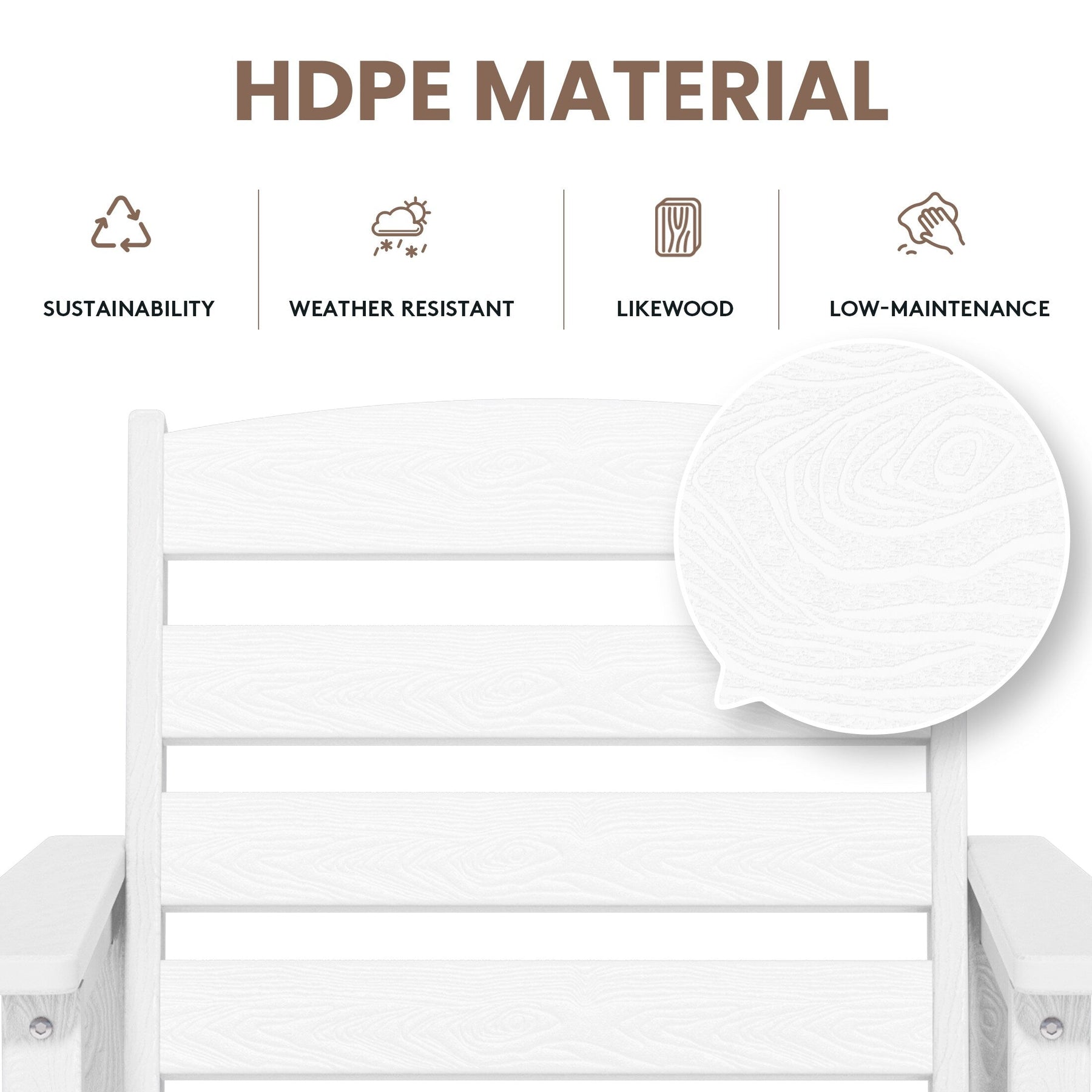 Cet ensemble comprend une table et deux chaises de style Adirondack. Les chaises Adirondack sont réputées pour leur assise et leur dossier inclinés, leurs larges accoudoirs et leur design décontracté. Cet ensemble est conçu pour créer un coin salon confortable sur votre terrasse ou dans votre jardin. Idéal pour les conversations, la détente et les activités de plein air.