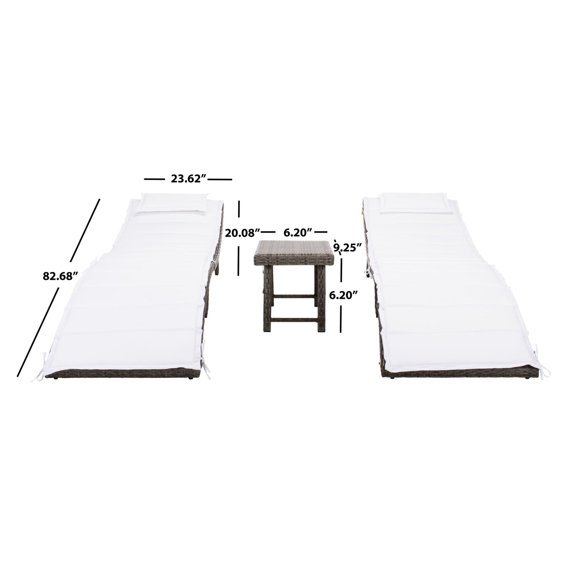 Ensemble de chaises longues d'extérieur Blaguna 3 pièces SAFAVIEH - 83 L x 20 P x 24 H