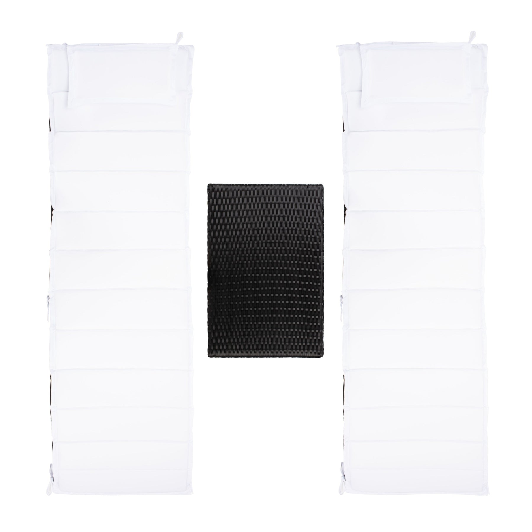 Profitez du soleil d'été avec cet ensemble de 3 chaises longues. Les silhouettes élancées et douces des deux sièges en rotin synthétique Carew sont parfaitement surmontées de coussins blancs moelleux pour une détente optimale. Une table d'appoint assortie est idéale pour des boissons colorées ou des fruits frais.