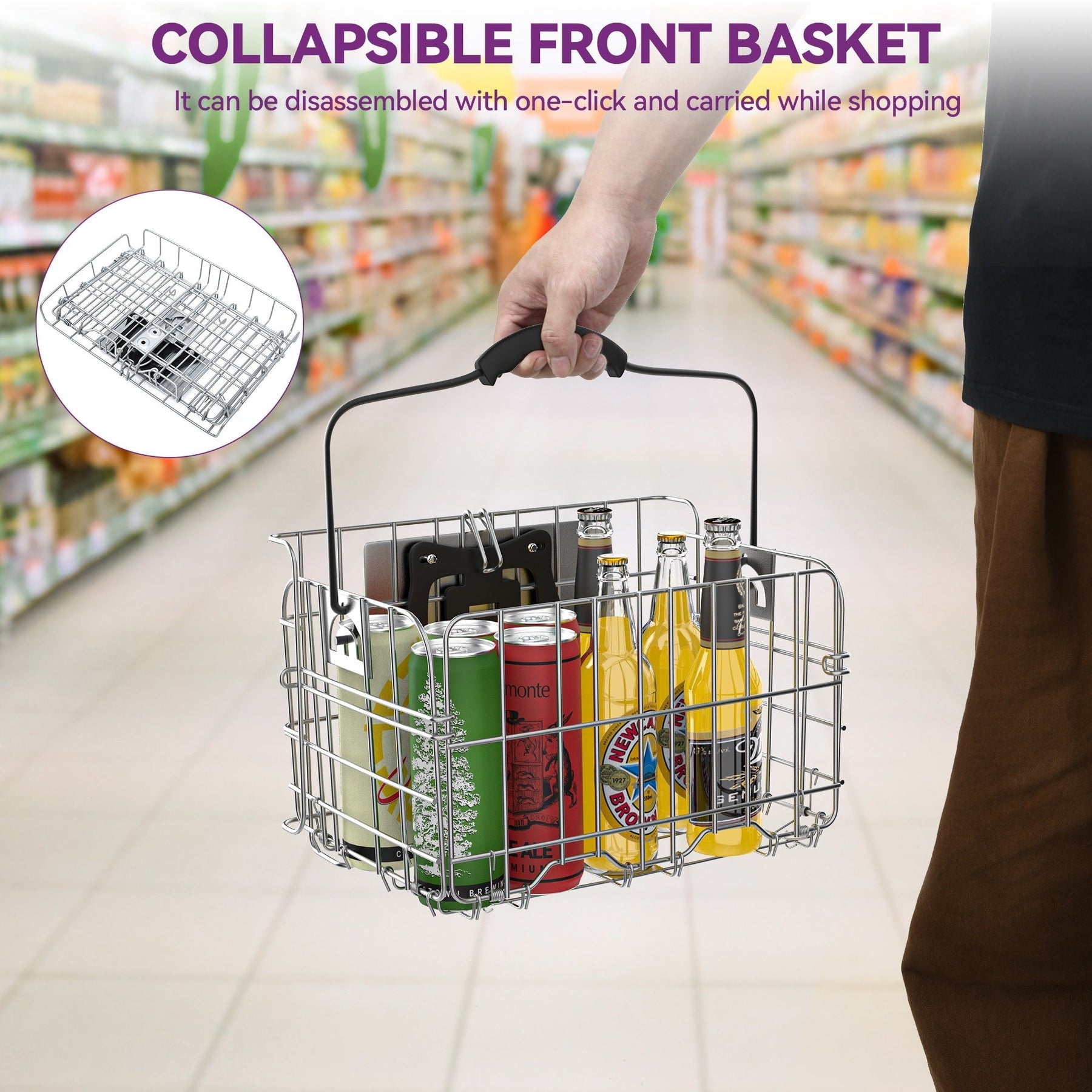 Panier arrière robuste d'une capacité de 55 lb, parfait pour ranger les courses et même les animaux de compagnie