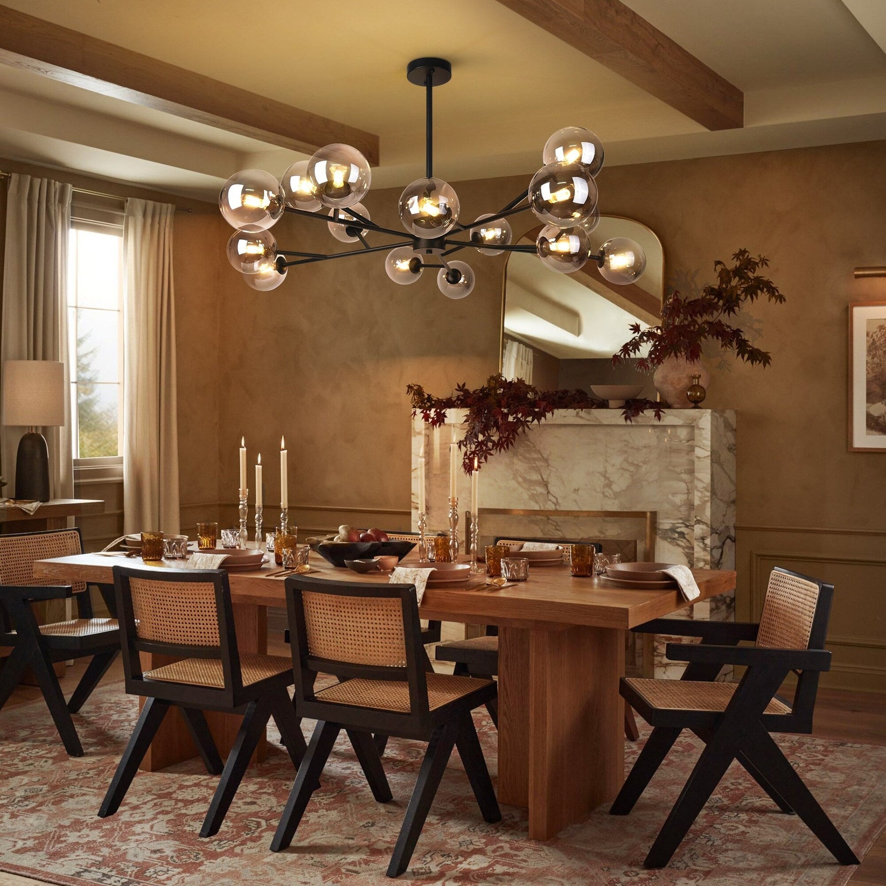 Affirmez votre style dans n'importe quelle pièce avec ce lustre en verre Sputnik, moderne et élégant. Son design à la fois unique et sophistiqué, et son abat-jour en forme de globe en verre fumé noir/ambre assure un éclairage doux et généreux. Ce lustre en forme de globe doré/noir est le choix idéal pour un éclairage aussi fonctionnel que décoratif. L'association de globes en verre et d'un cadre en tube métallique crée un effet saisissant.