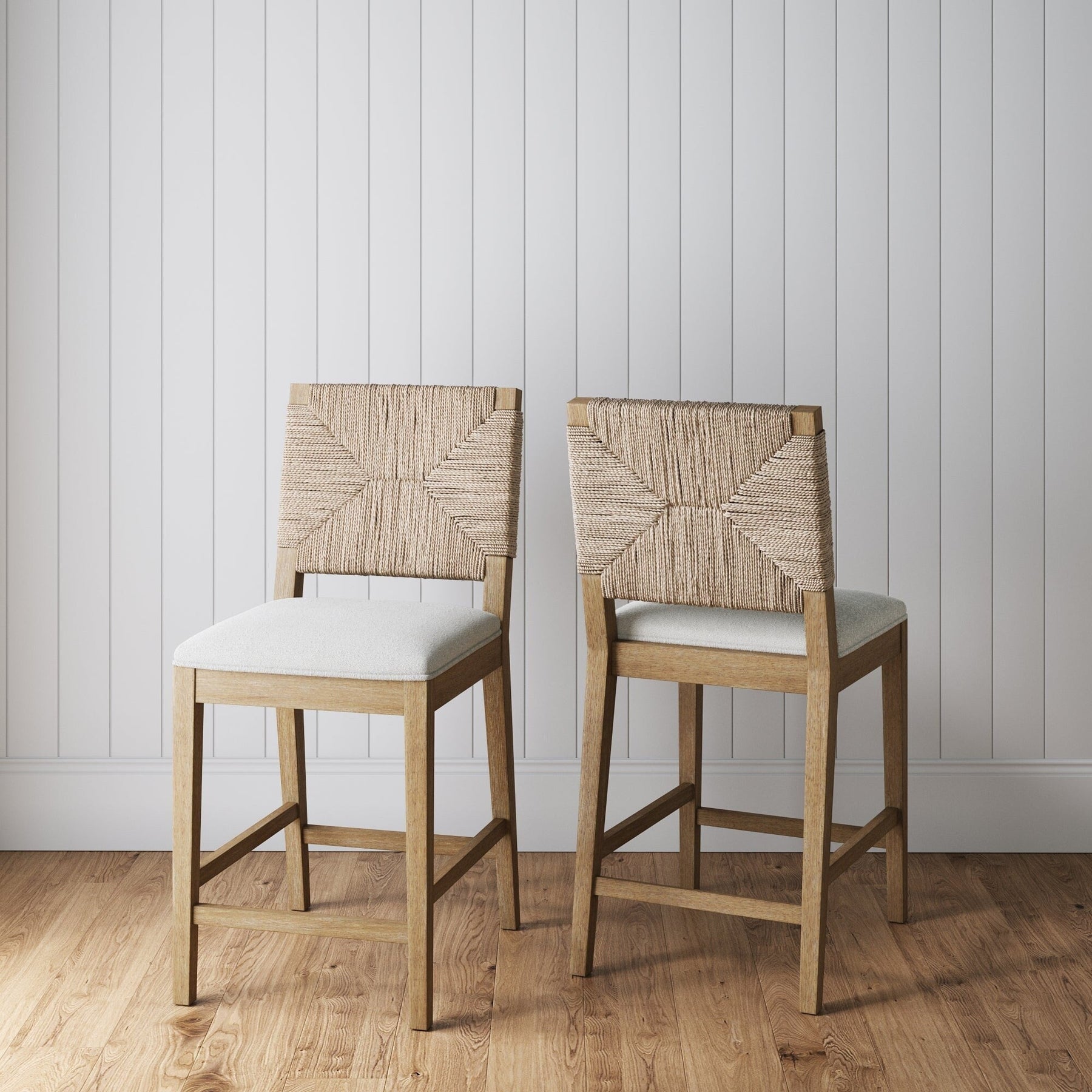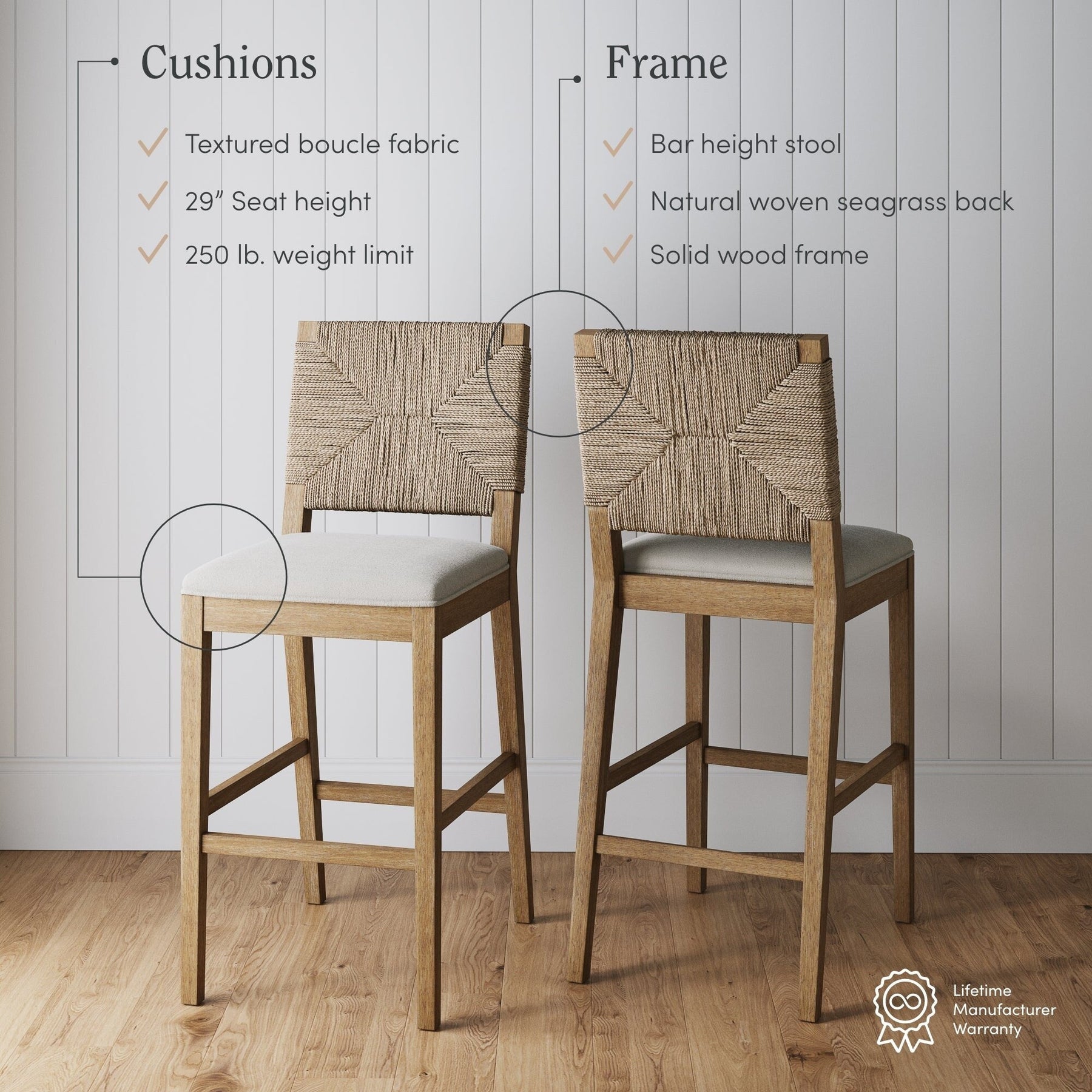 - Beacon est un tabouret de bar de style bohème construit avec un siège rembourré confortable et des pieds en bois d'hévéa massif brossé.