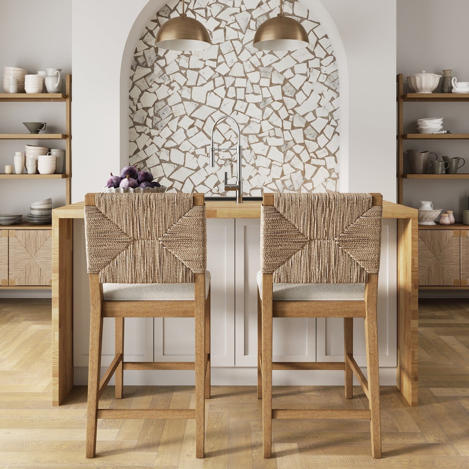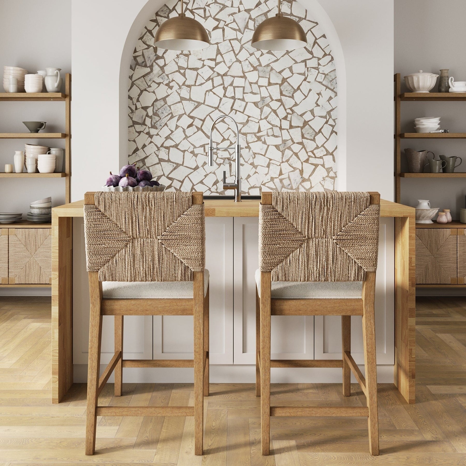 Notre tabouret de bar Beacon est une beauté naturelle ! Son dossier tressé en jonc de mer évoque une ambiance balnéaire légère, faisant de ce tabouret de bar bohème un atout esthétique pour votre espace. Cette chaise haute est idéale pour votre îlot central ou votre bar, que ce soit pour un dîner décontracté ou une soirée vin décontractée. Son revêtement en lin bouclé texturé repose sur une assise en mousse moelleuse pour des heures de confort. Beacon n'est pas seulement un joli tabouret rembourré : nous avons veillé à sa fonctionnalité grâce à sa structure en bois massif robuste pour une durabilité accrue. Son cadre brun naturel brossé apporte également une touche intemporelle à votre intérieur ! Que vous sirotiez votre café du matin ou que vous savouriez un en-cas tard le soir, le tabouret de bar Beacon est là pour vous. Et si vous aimez l'harmonie, pensez à l'associer à d'autres pièces tendance de notre collection Beacon pour un look harmonieux !
