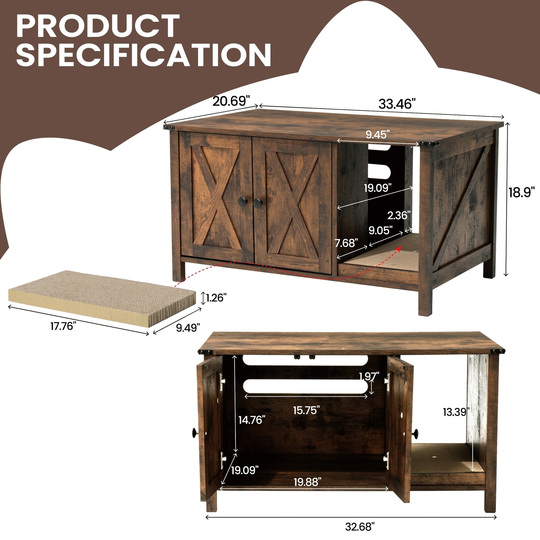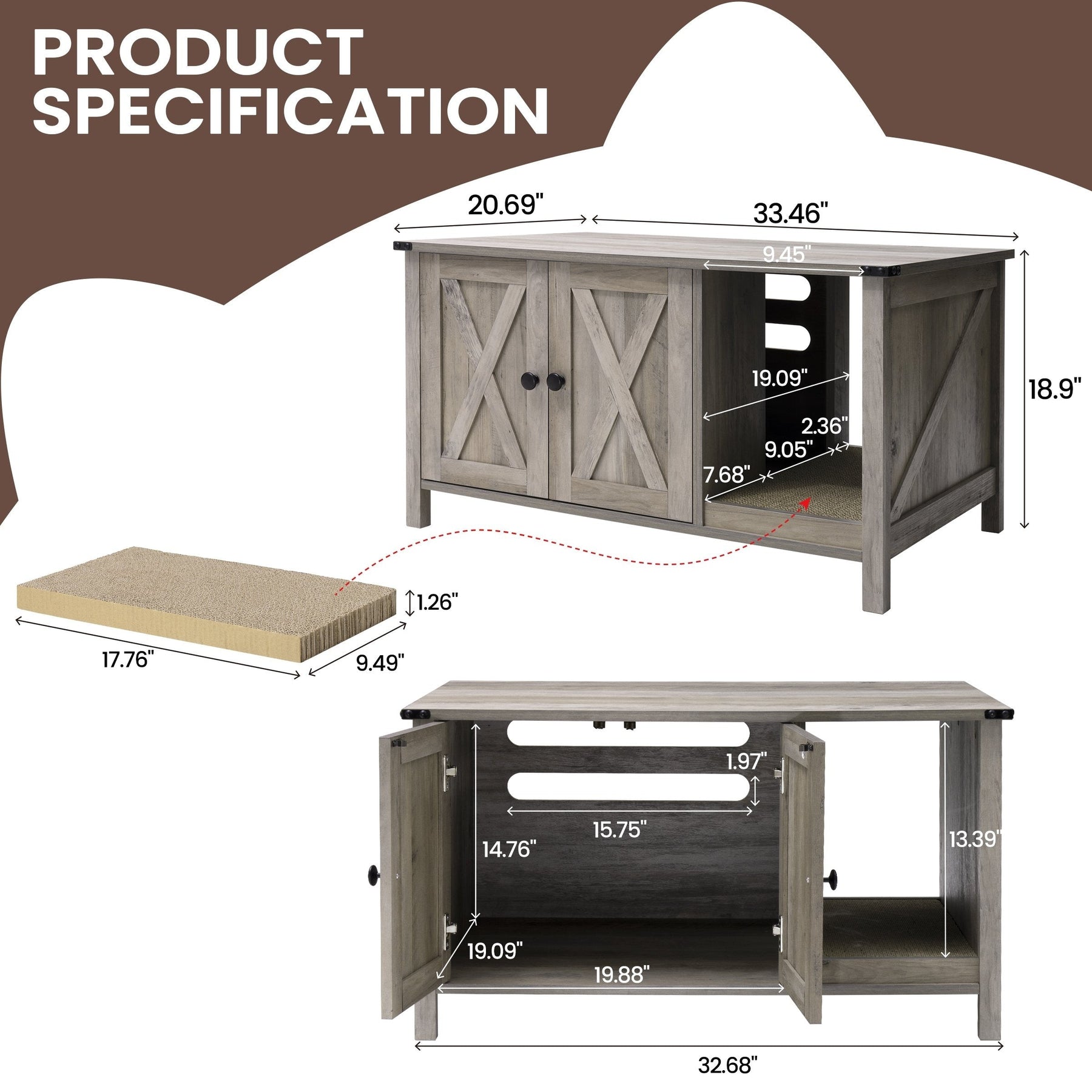 • Le bac à litière pour chat peut être placé ( le bac à litière NON inclus ), avec une ventilation, ce qui est propice à la circulation de l'air et à la filtration de la lumière ;