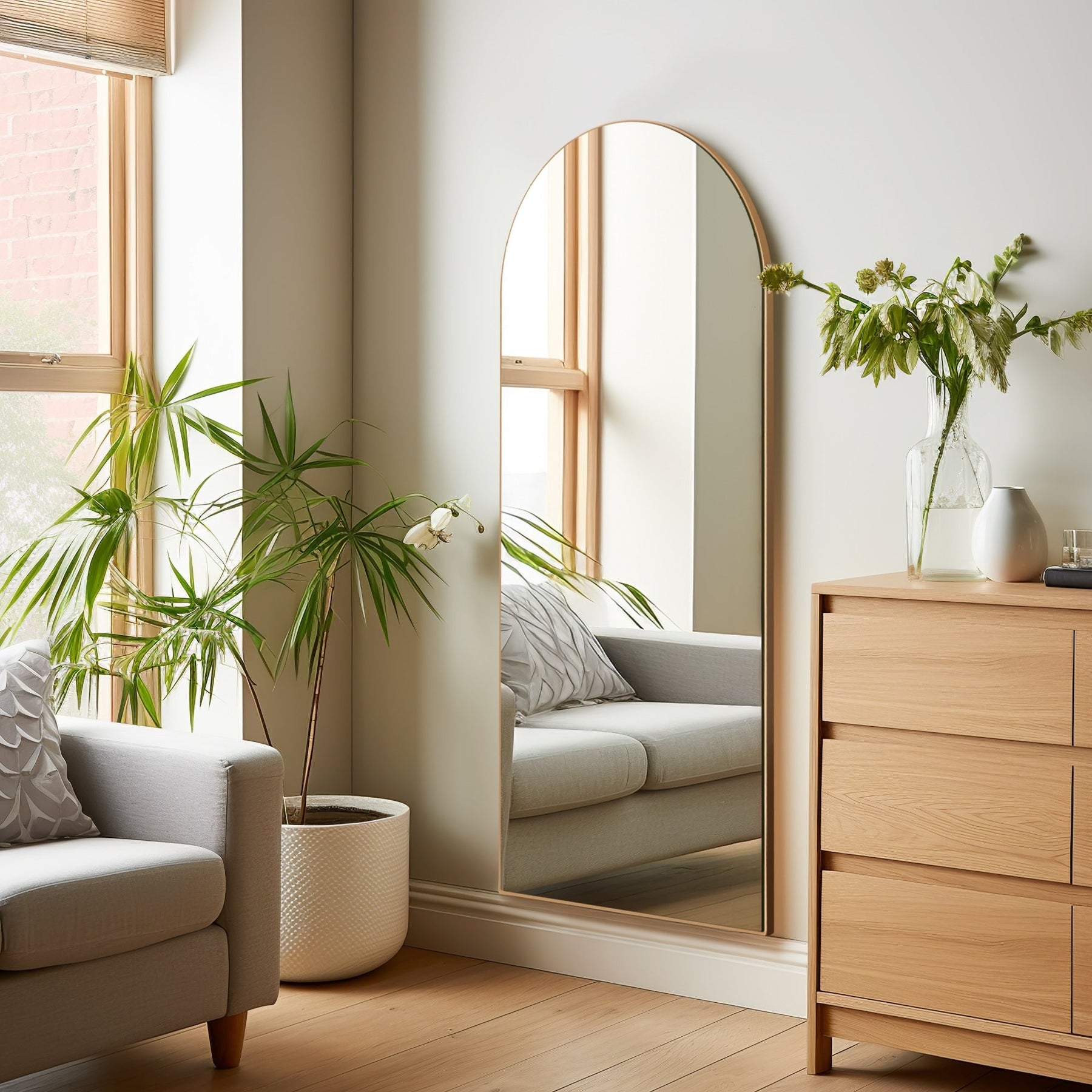 Miroir pleine longueur pour une réflexion complète : Profitez d'une vue complète du corps avec ce miroir sur pied, parfait pour vous habiller ou admirer votre tenue.