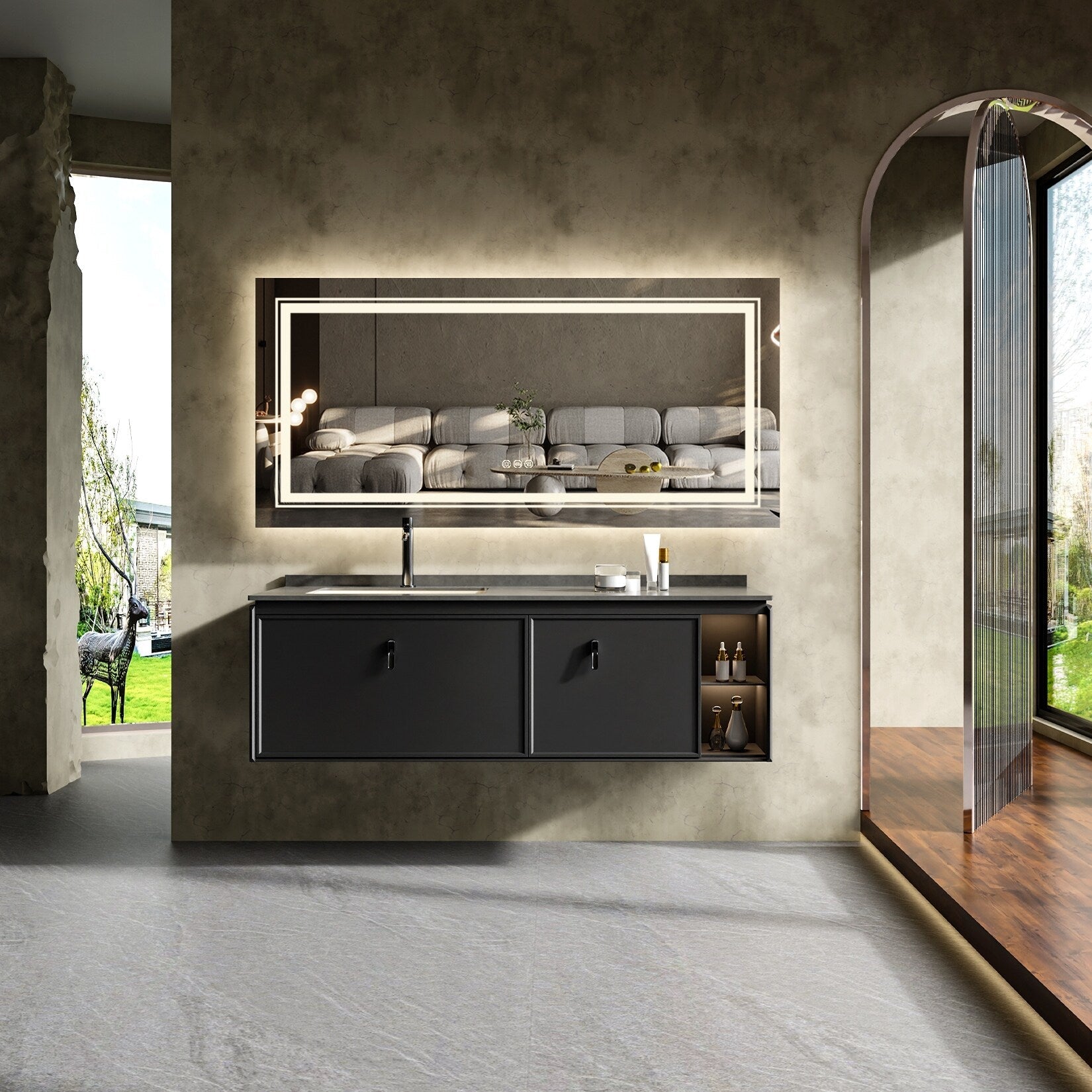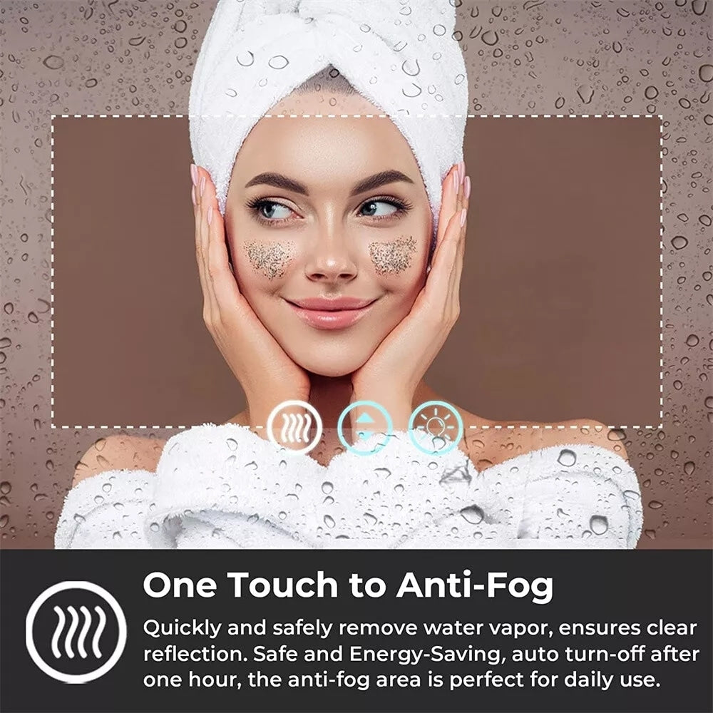 Modernisez votre salle de bain avec notre miroir mural antibuée extra-large à LED, disponible en 3 couleurs ! Profitez d'un reflet parfait pour votre routine quotidienne grâce à un éclairage puissant et précis (IRC de plus de 90). Fini les nettoyages fréquents avec un spray antibuée grâce à sa fonction antibuée intégrée. Choisissez entre 3 niveaux de luminosité et tamisez l'intensité lumineuse grâce au capteur tactile, idéal pour votre maquillage quotidien. Fabriqué avec des matériaux respectueux de l'environnement, ce miroir offre une durée de vie de plus de 50 000 heures pour ses LED. Suspendez-le horizontalement ou verticalement pour un look moderne et minimaliste. Garantie 3 ans et pièces de rechange d'origine.