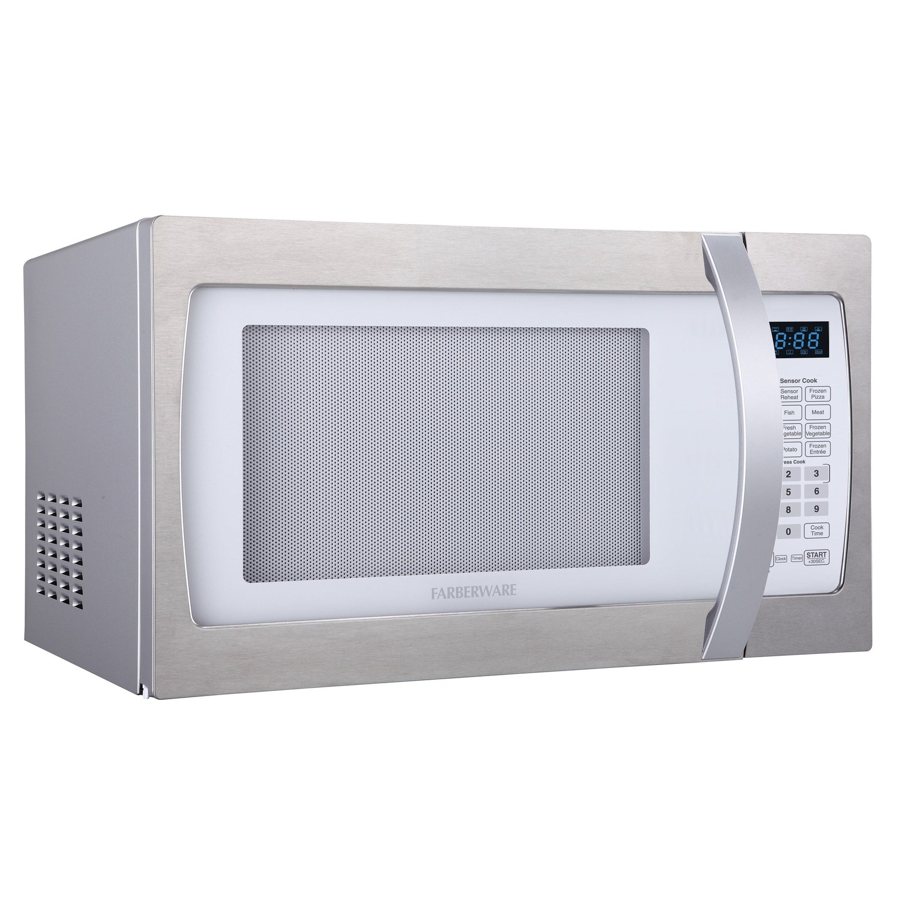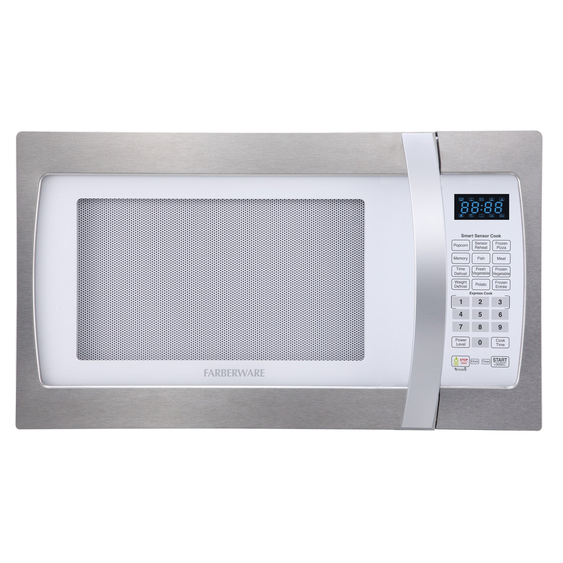 Four à micro-ondes Farberware Professional de 1,3 pi³ et 1 100 W avec cuisson par capteur intelligent, blanc et platine