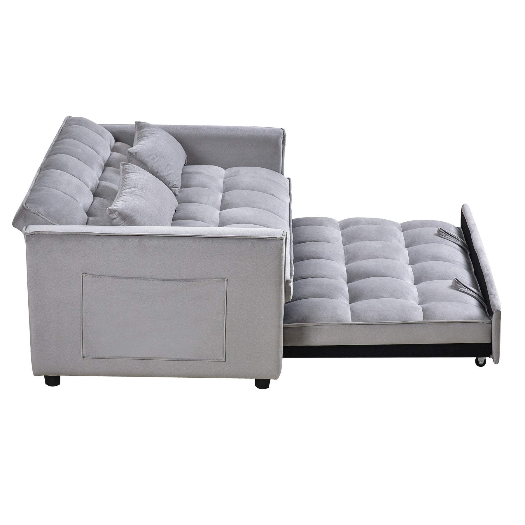 Canapé-lit gigogne moderne, canapé-lit 3 en 1 avec dossier réglable, causeuse en velours, oreillers et poches latérales