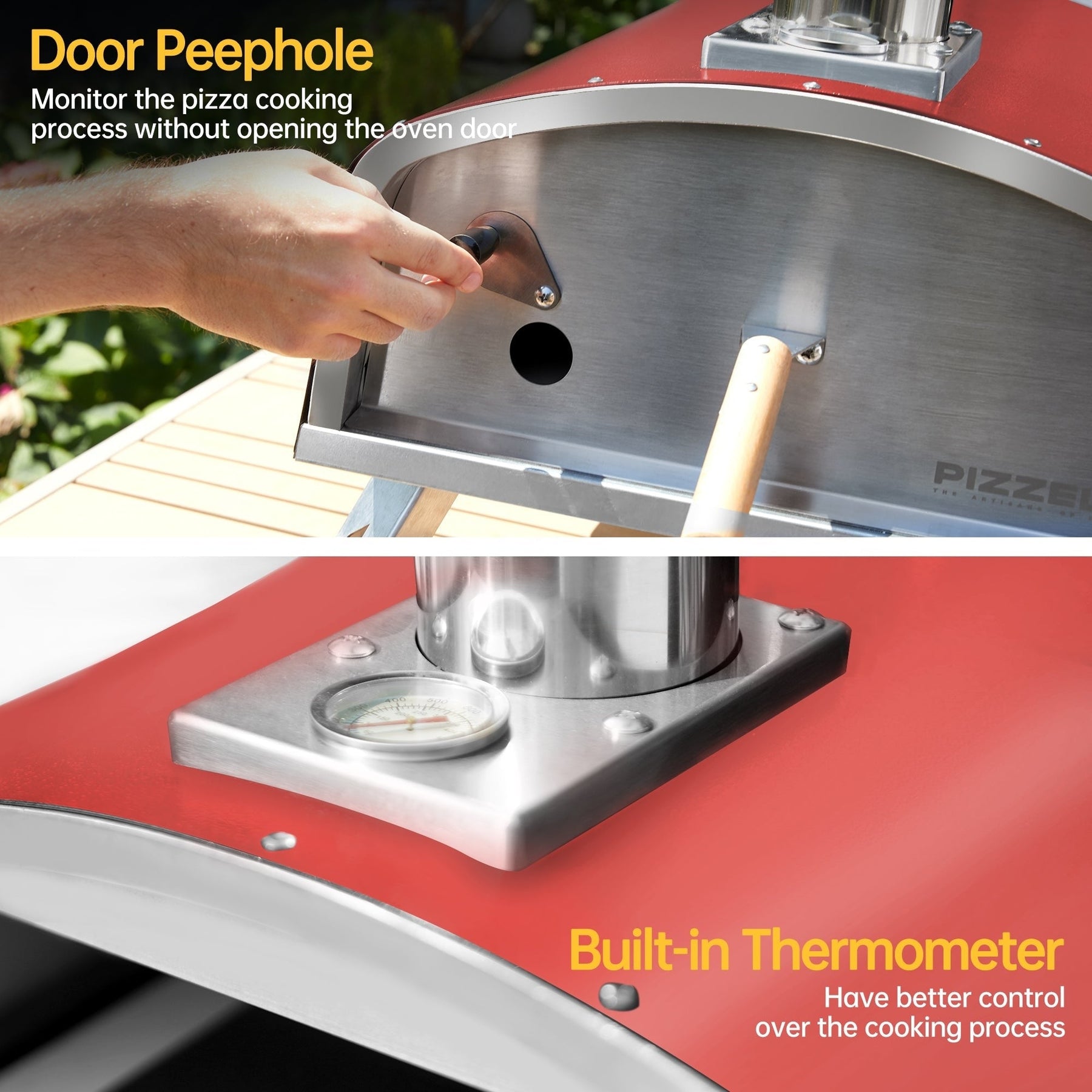Notre four à pizza à granulés de bois de 4,8 m est conçu pour une polyvalence et une praticité exceptionnelles. Compatible avec les granulés de bois, ce four à pizza d'extérieur atteint rapidement la température de 400 °C en seulement 20 à 25 minutes, idéal pour une cuisson parfaite en 60 secondes. Sa conception portable est dotée d'une poignée et de pieds pliables pour un transport facile, ainsi que d'un thermomètre intégré pour un contrôle précis de la température. Grâce à ses doubles parois et à son revêtement intérieur en acier inoxydable, ce four à pizza portable conserve la chaleur et se nettoie facilement. Au-delà des pizzas, il répond à divers besoins culinaires.